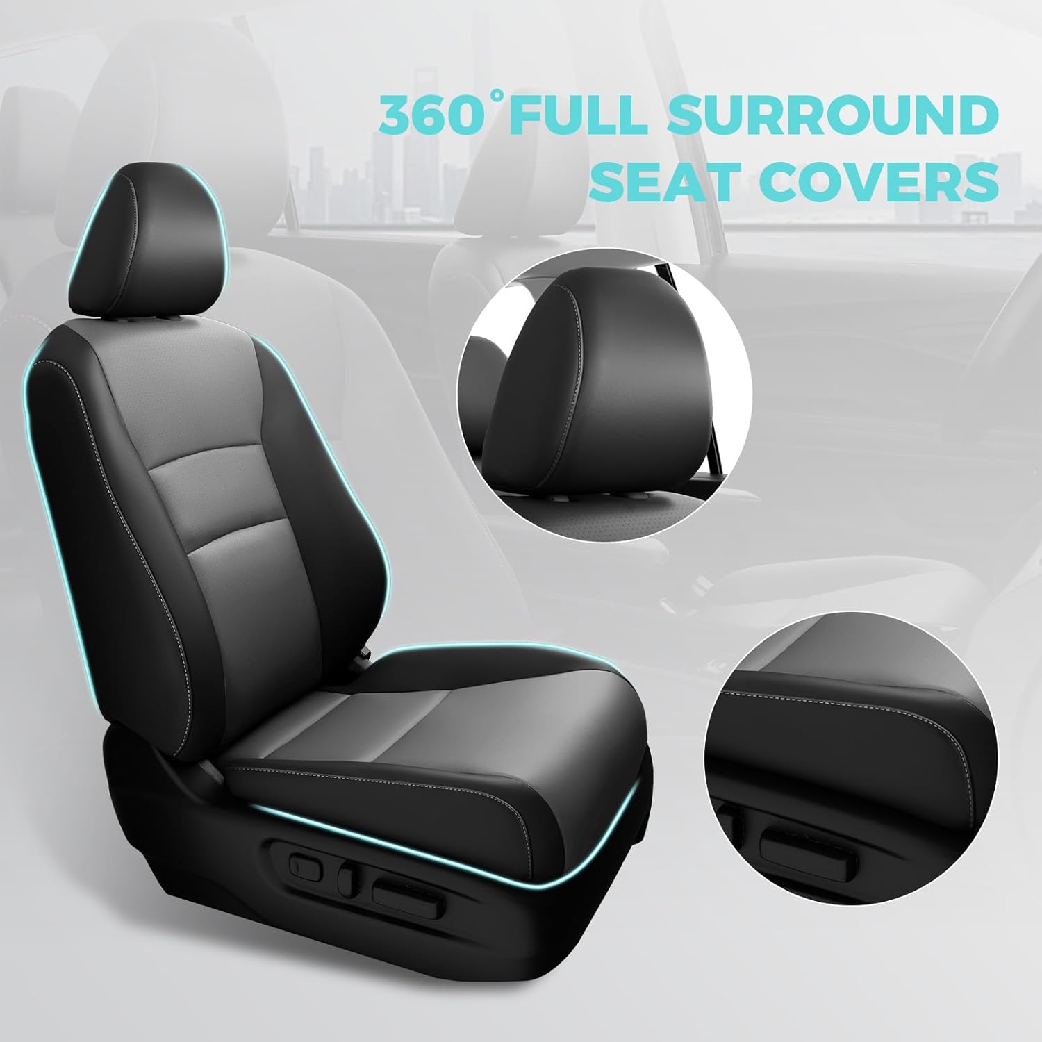 Custom Fit for Honda Pilot Seat Covers - Car Seat Covers Full Set for Pilot LX EX 2016 2017 2018 2019 2020 2021 2022 8 Seats, Leather Automotive Seat Covers, Black Grey