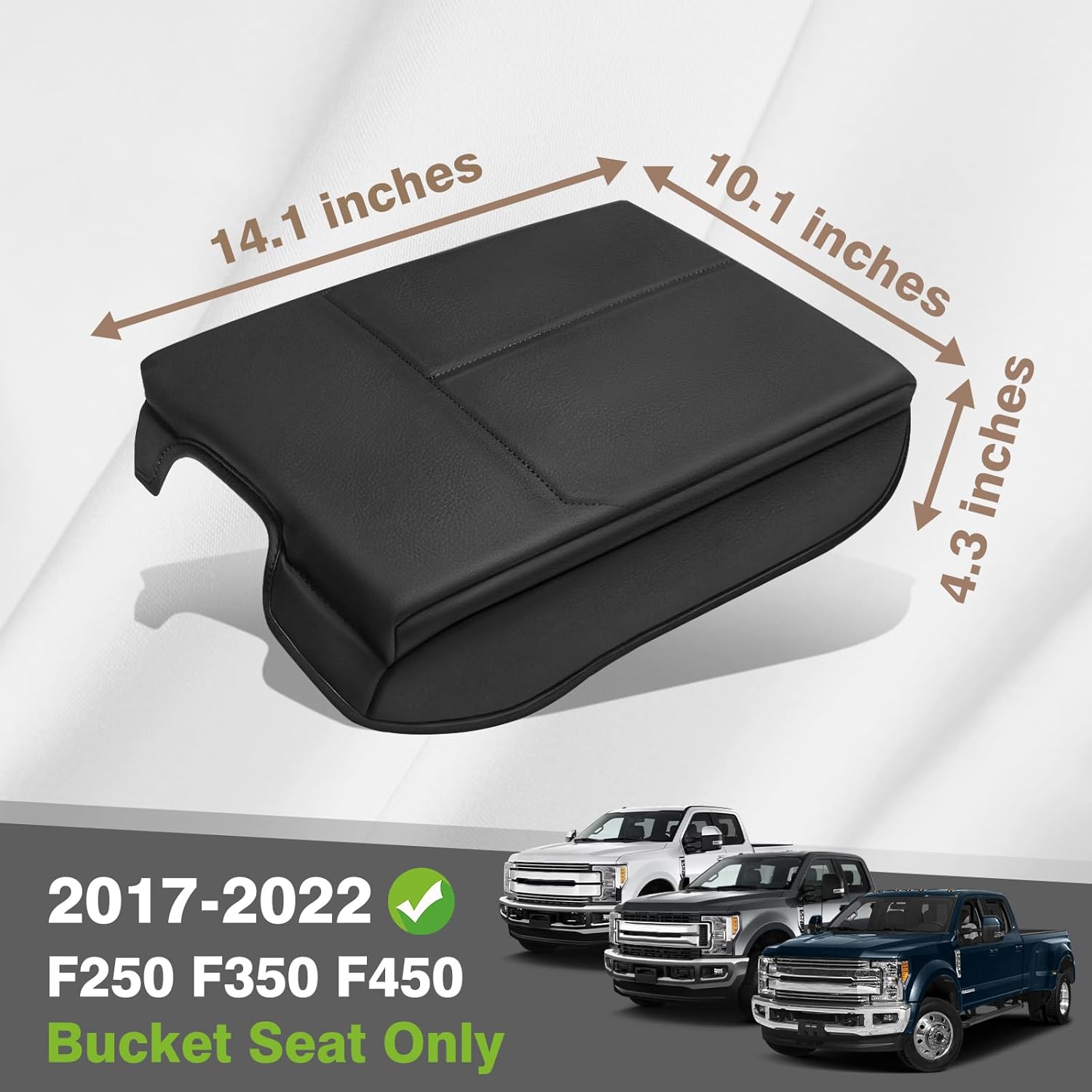 Muslogy Center Console Armrest Cover Compatible with Ford F250 F350 F450 2017-2022 Super Duty Comfort Armrest Pad Arm Rest Cushion Vegan Leather Protector 1-Inch Extra Thick(Bucket Seat ONLY)