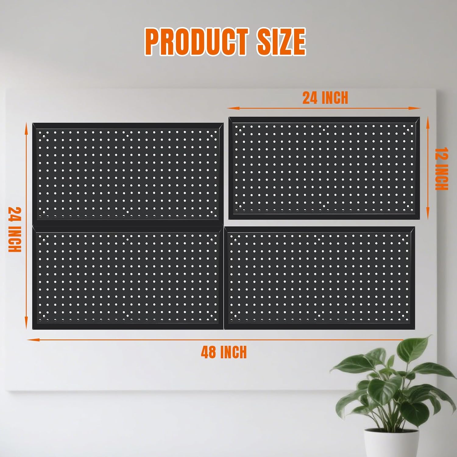 - 44 PCS Pegboard System: Package comes with 4pcs pegboard panels and 40pcs accessories. All the different sizes and shapes of hooks will cover your every needs. Modular design gives you the freedom to position pegboard panels however you want.