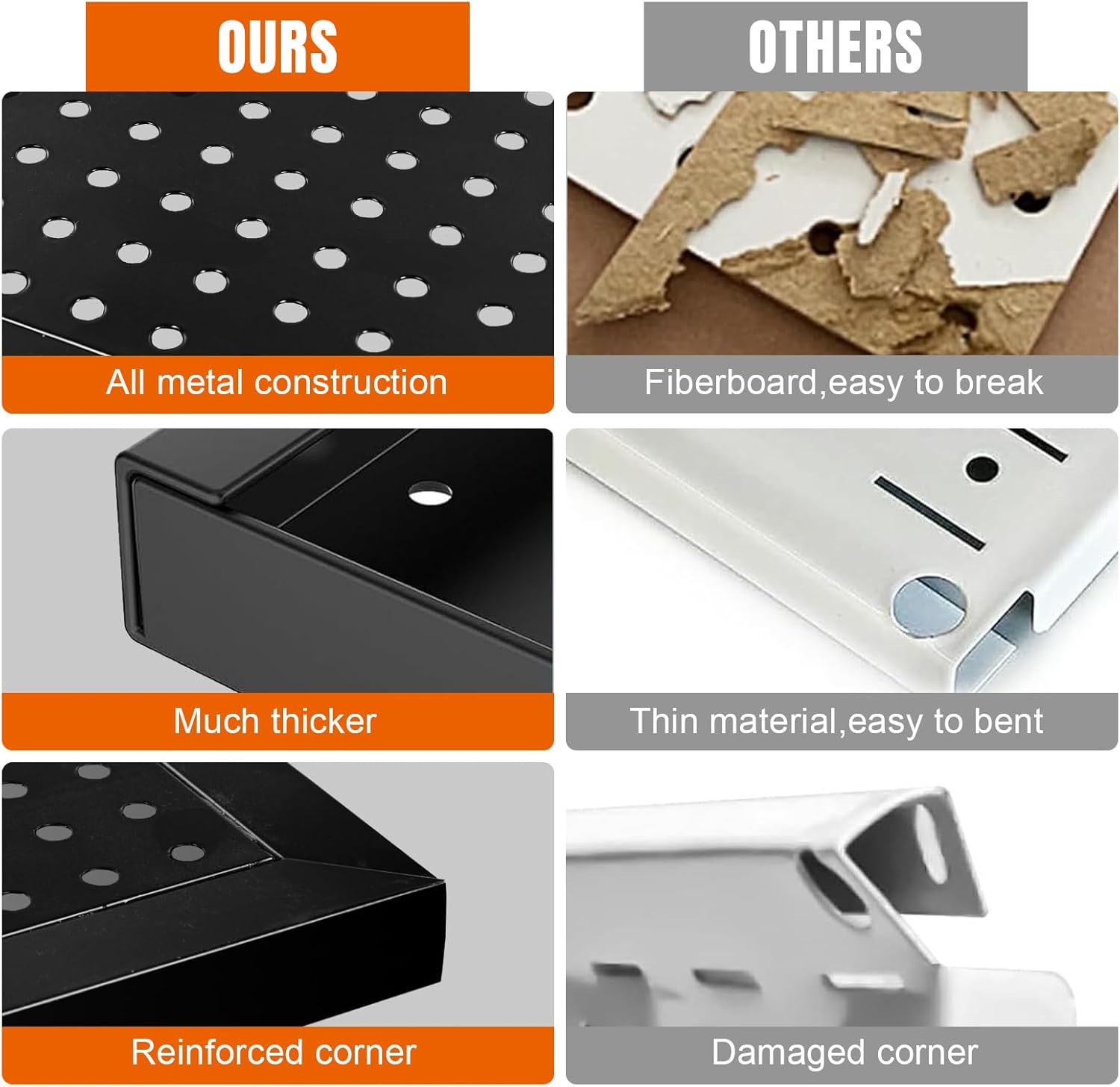 - Built to Last: Pegboard panels are made of high quality steel with powder coated finish, sturdy, scratch resistant and easy to clean. Will last forever, never warp and deteriorate. The metal pegboard will hold the weight of all your tools. You won't be disappointed.