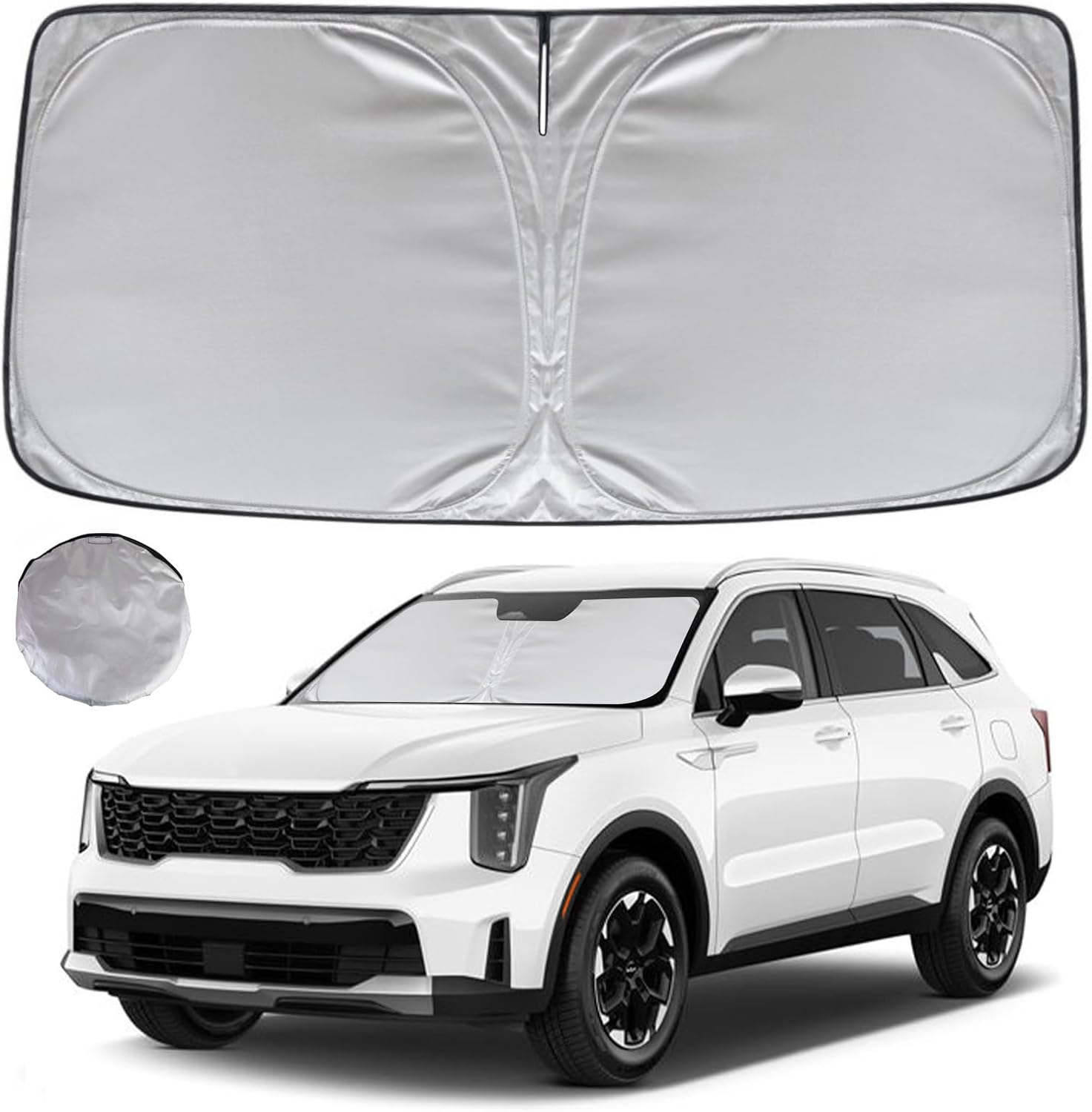 - KAYZT windshield sun shade is precise custom fit for 2021 2022 2023 2024 2025 2026 Kia Sorento, Thoroughly covers every corner of the windshield, Tailored to accommodate rear view mirror, Ensuring a seamless and snug fit without obstruction, Must have car accessories for Kia Sorento