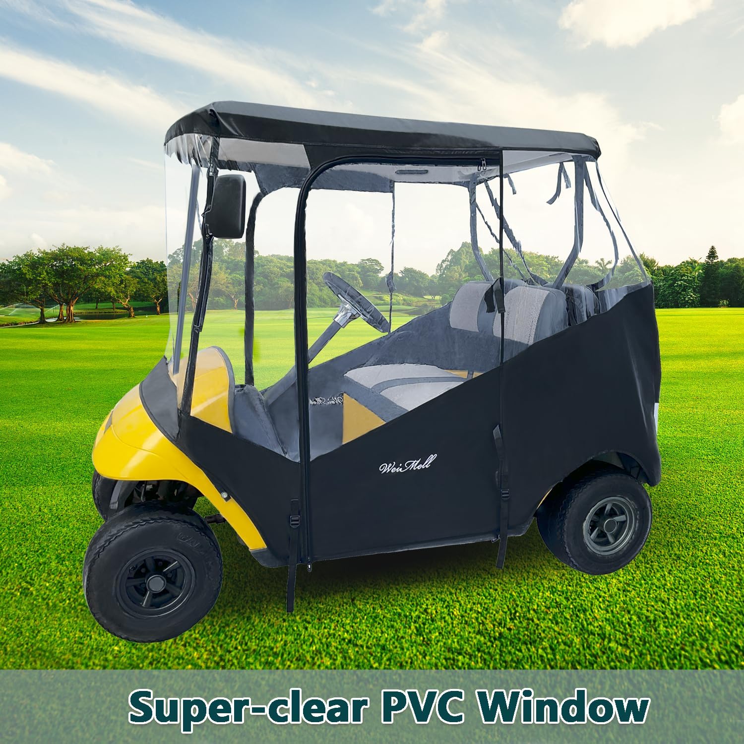 - VISIBILITY AND SAFETY: The WEIMELL Golf Cart Driving Rain Cover has four clear PVC windows with clear taillight windows and zippered openings on the side view mirrors, allowing you to drive safely day or night.