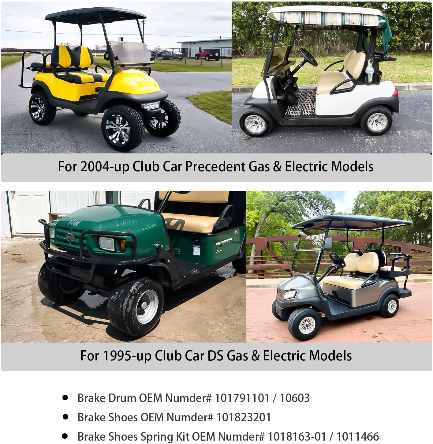 - PACKAGE INCLUDED : This golf cart rear brake assembly kit comes with 2 pcs brake drum/hub; 4 pcs brake shoes; 1 pack brake spring hardware kit