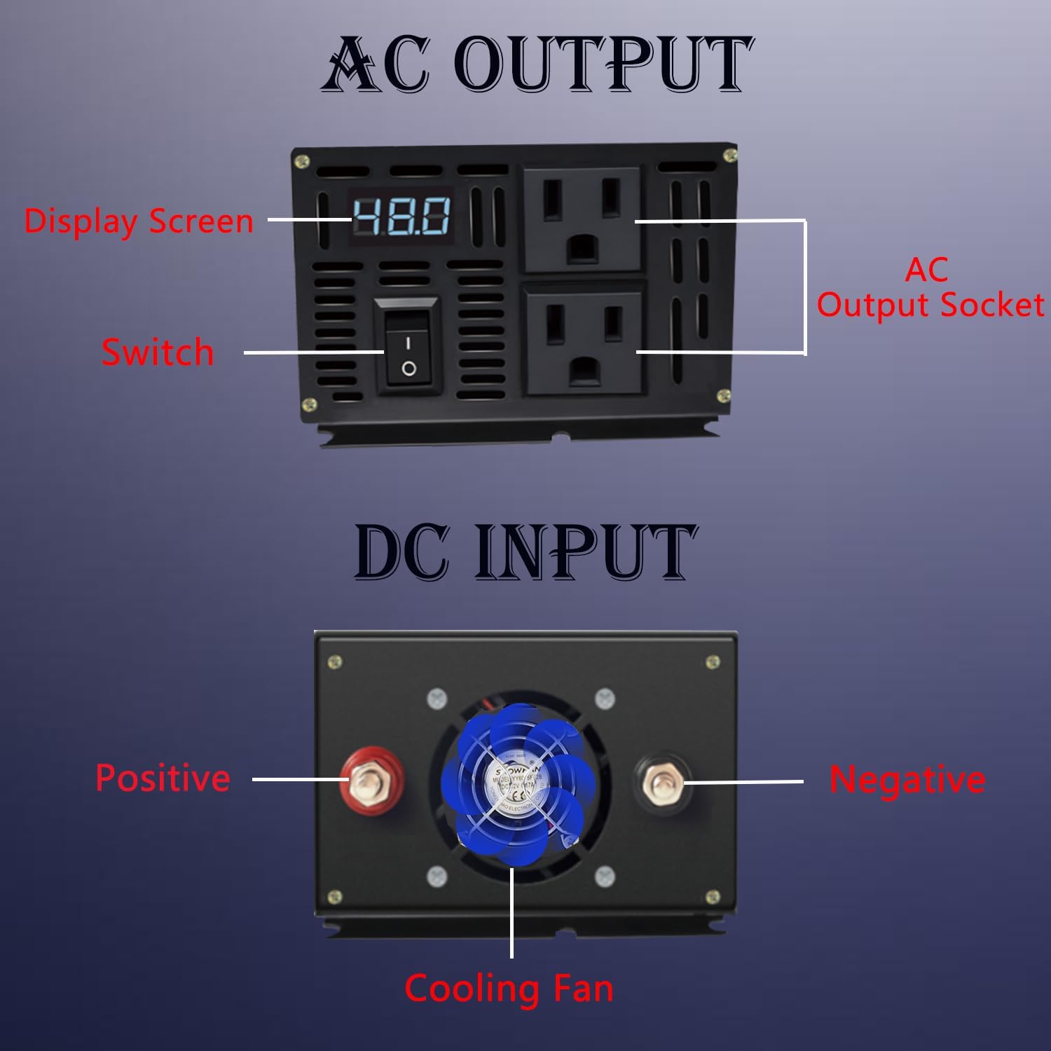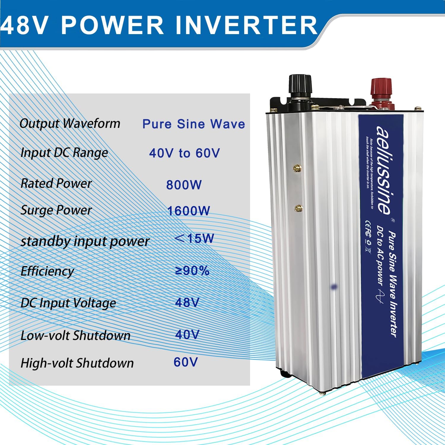 800W Pure Sine Wave Inverter-48V DC to 110V 120V AC Power Converter with 2 AC Outlets, 48 Volt Power Inverter for Truck, Rv, Camping, Home, Emergency Power