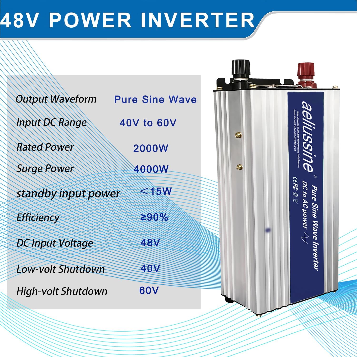 2000W Pure Sine Wave Inverter-48V DC to 110V 120V AC Power Converter with 4 AC Outlets, 48 Volt Power Inverter for Truck, Rv, Camping, Home, Emergency Power