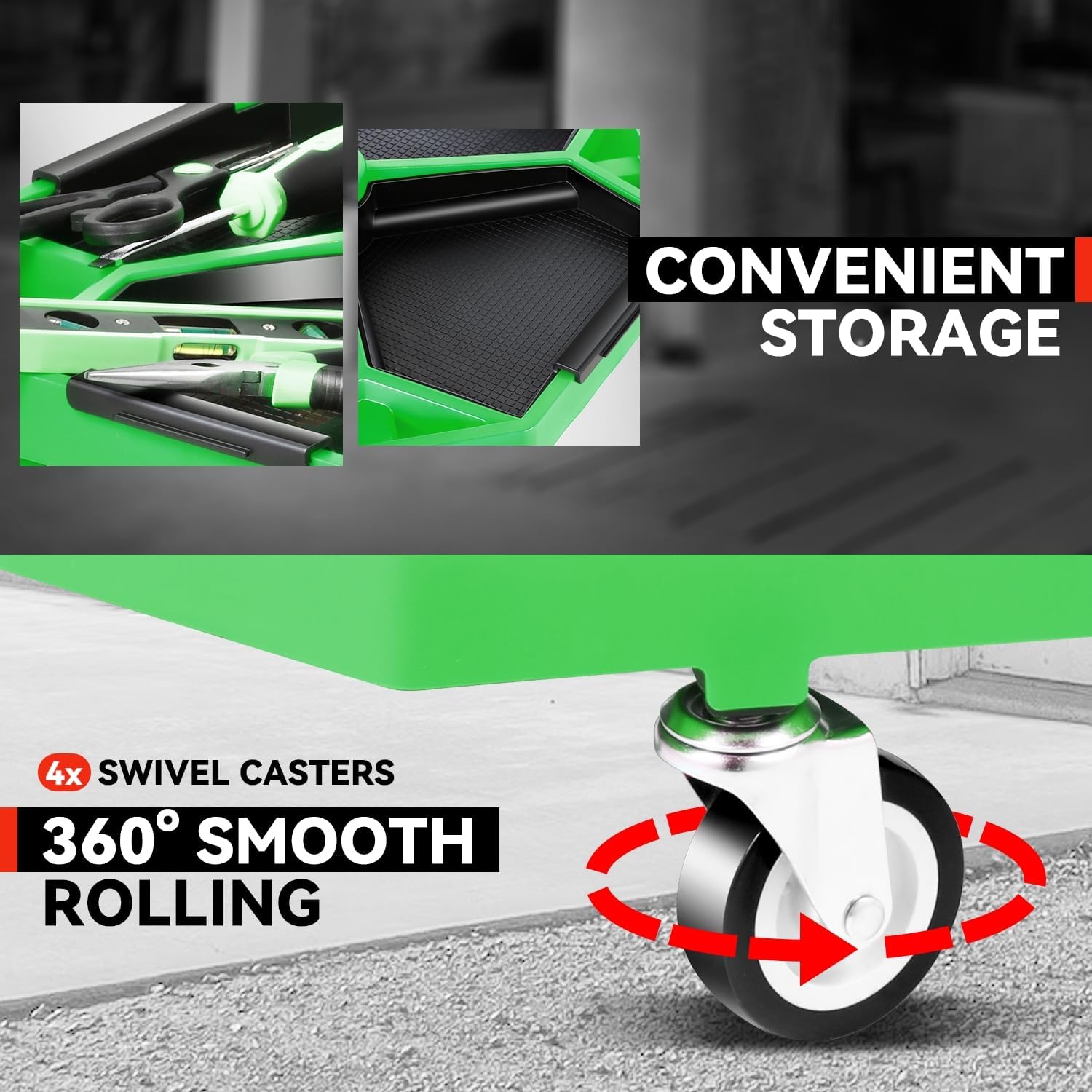 Auto Dynasty Mechanic Stool, Adjustable Rolling Pneumatic Creeper Garage Shop Seat with Tool Tray, 300 LBS Roller Seat for Workshop Auto Repair, Adjustable Height 15.7" to 21", Green