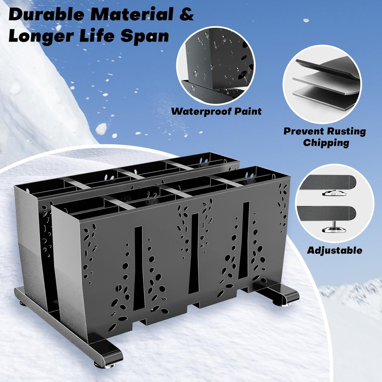 - Ideal for Snowboard and Ski Enthusiasts – Whether for your garage, home, or ski lodge, this versatile rack offers a convenient storage solution for ski and snowboard lovers, keeping your equipment safe and ready for the next adventure.