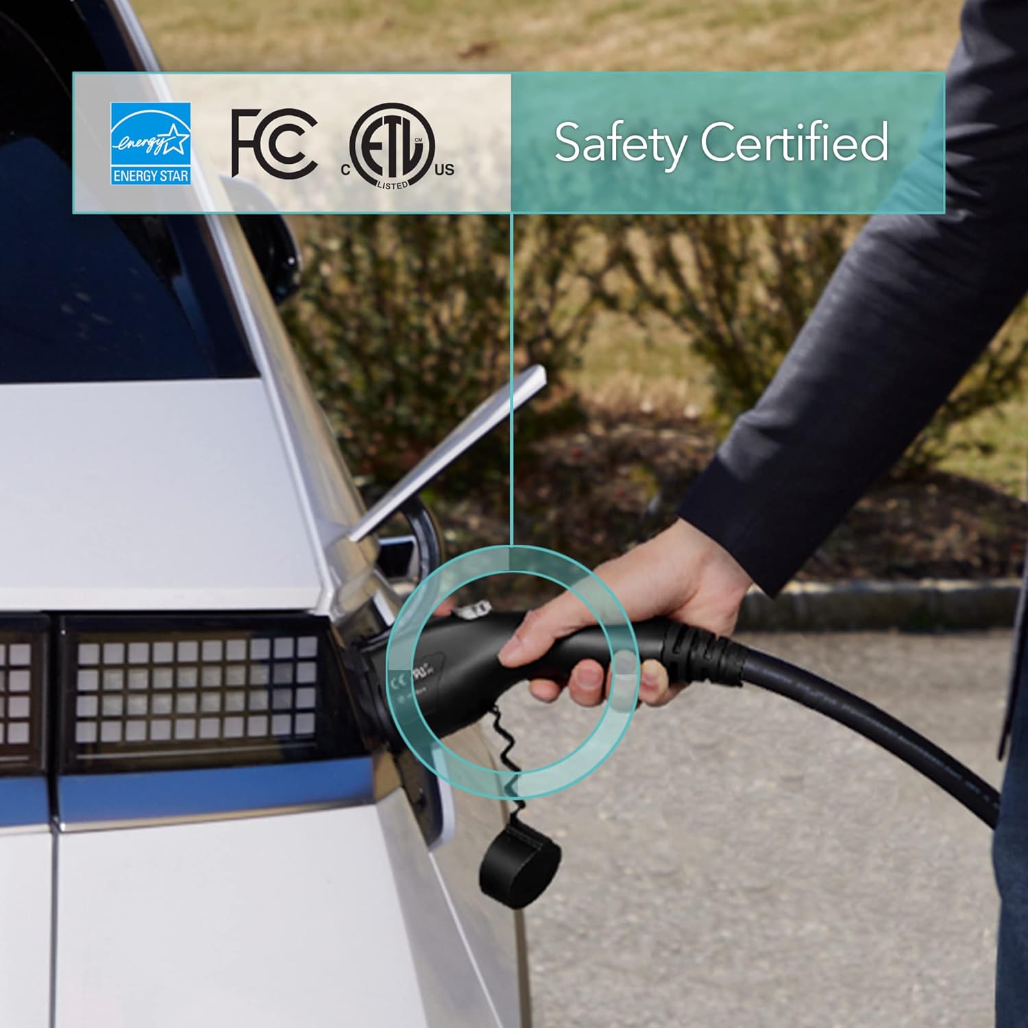 - SAFE AND RELIABLE - Safely charge your J1772 EVs rain or shine. Made of high-grade, rugged materials to protect you from electric shock, the charger handle is UL 2251 certified, and the charger itself is Energy Star, ETL and FCC certified