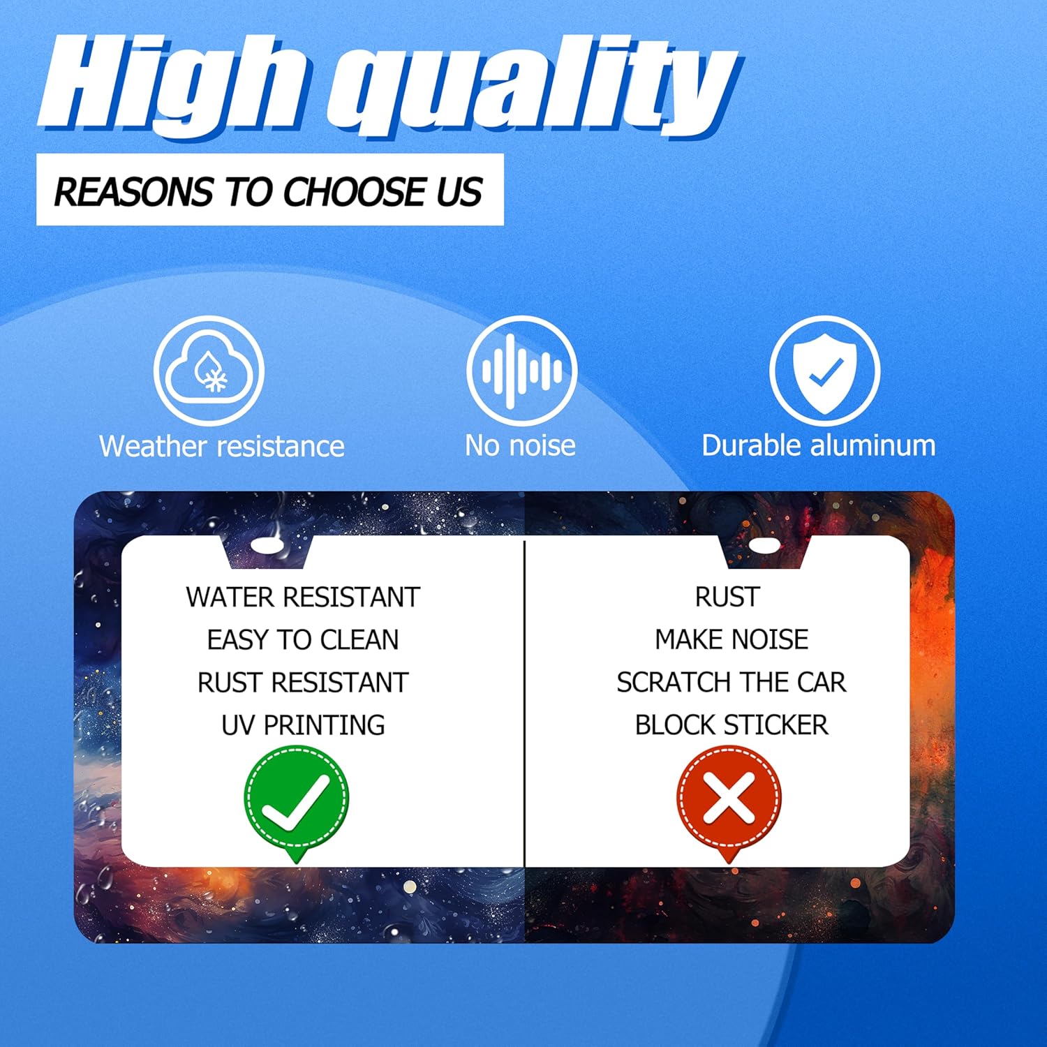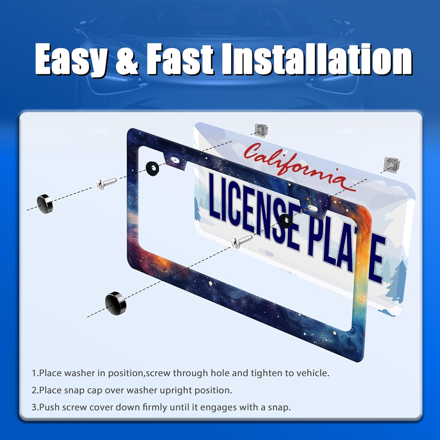 Watercolor Galaxy License Plate Frame Colorful Starry Sky License Plate Stainless Steel Funny License Plate Holder Men Women Galaxy Car Accessory Decoration 12.3" x 6.3"