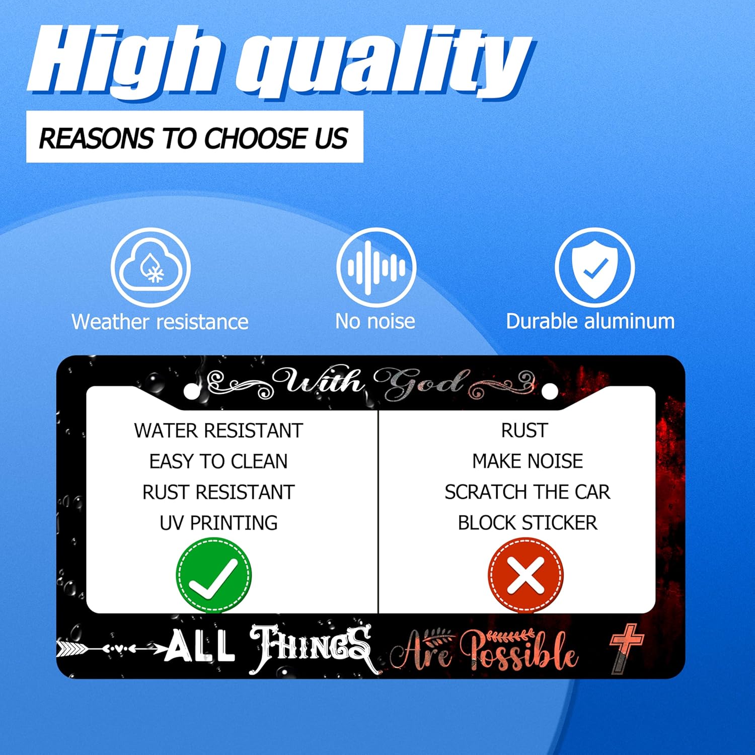 with God All Things are Possible License Plate Frame Christian License Plate Stainless Steel Funny License Plate Holder Men Women Personalize Jesus Cross Car Accessory Decoration 12.3" x 6.3"