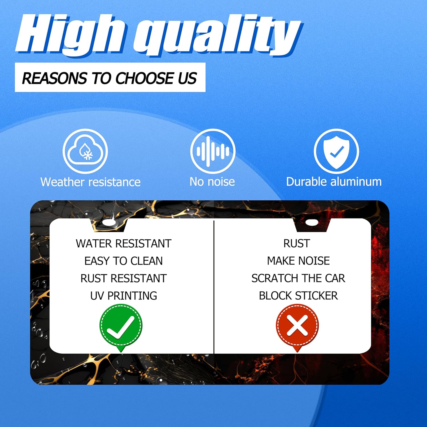 Marble License Plate Frame Black Gold Marble Printed License Plate Stainless Steel Funny License Plate Holder Men Women Colorful Car Accessory Decoration 12.3" x 6.3"