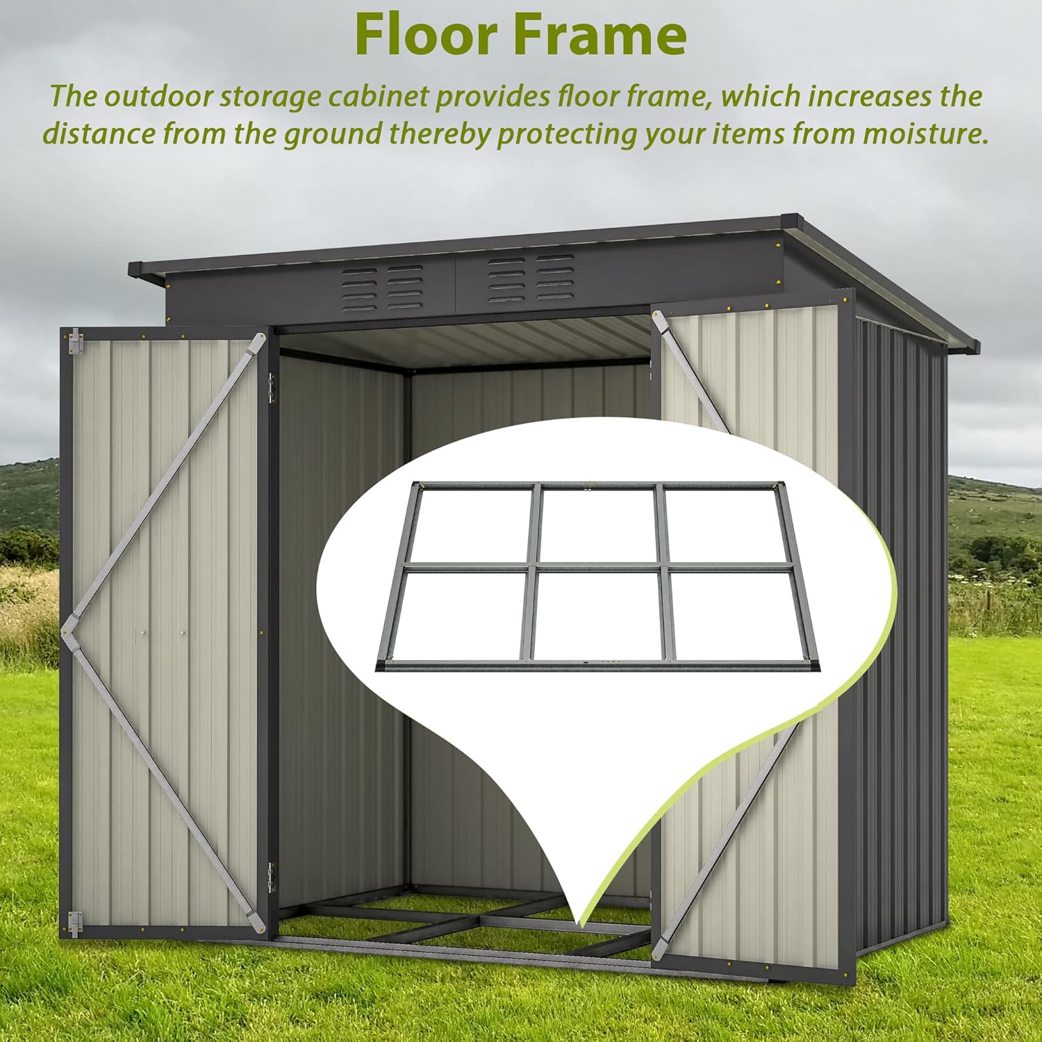 - Galvanized Steel: The garden tool storage is constructed with high-quality galvanized steel and upgraded 0.25mm thick panels for excellent corrosion resistance, waterproofing, and wind resistance, ensuring long-term durability in harsh outdoor environments