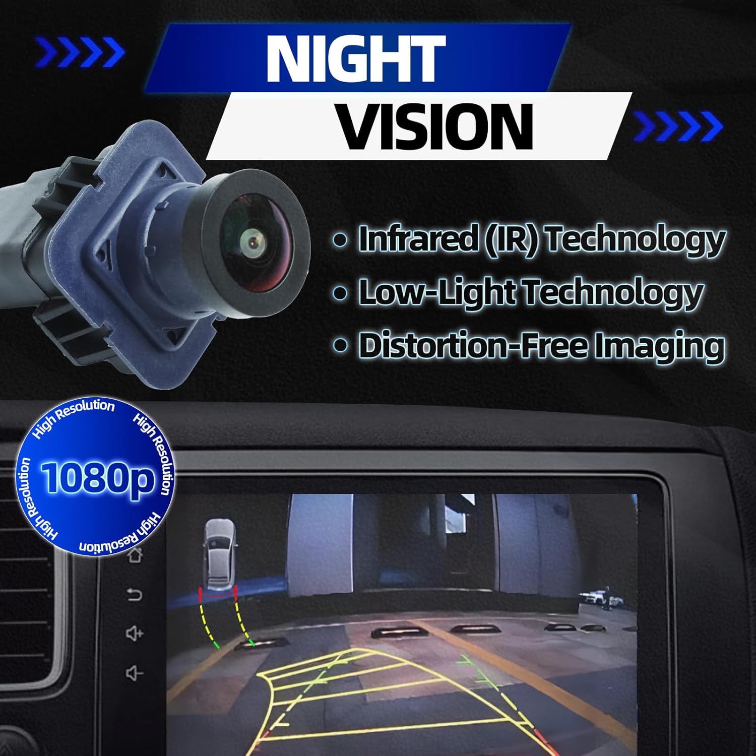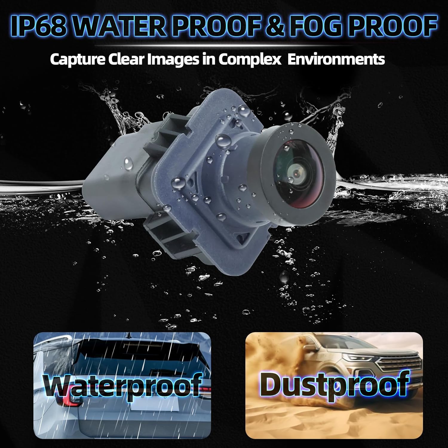 - Outsanding Camera Performance: (1) 8 layers of high strength glass that surface of the lens with anti-glare coating and anti-fog coating (2) Infrared (IR) and Low-Light technology of NIGHT VISION (4) IP67-rated for water and dust resistance (5) Meet Parking Assistance Systems and safety standard