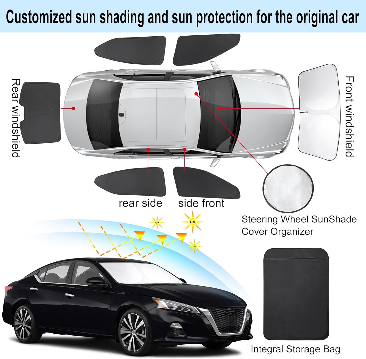 TINGLU 6PCS Window Shades for Nissan Altima 2019-2024 2025 Accessories Car Side Full Windows Cover Camping Rear Triangular Windshield Sun Shade Sun UV Rays Privacy Protection