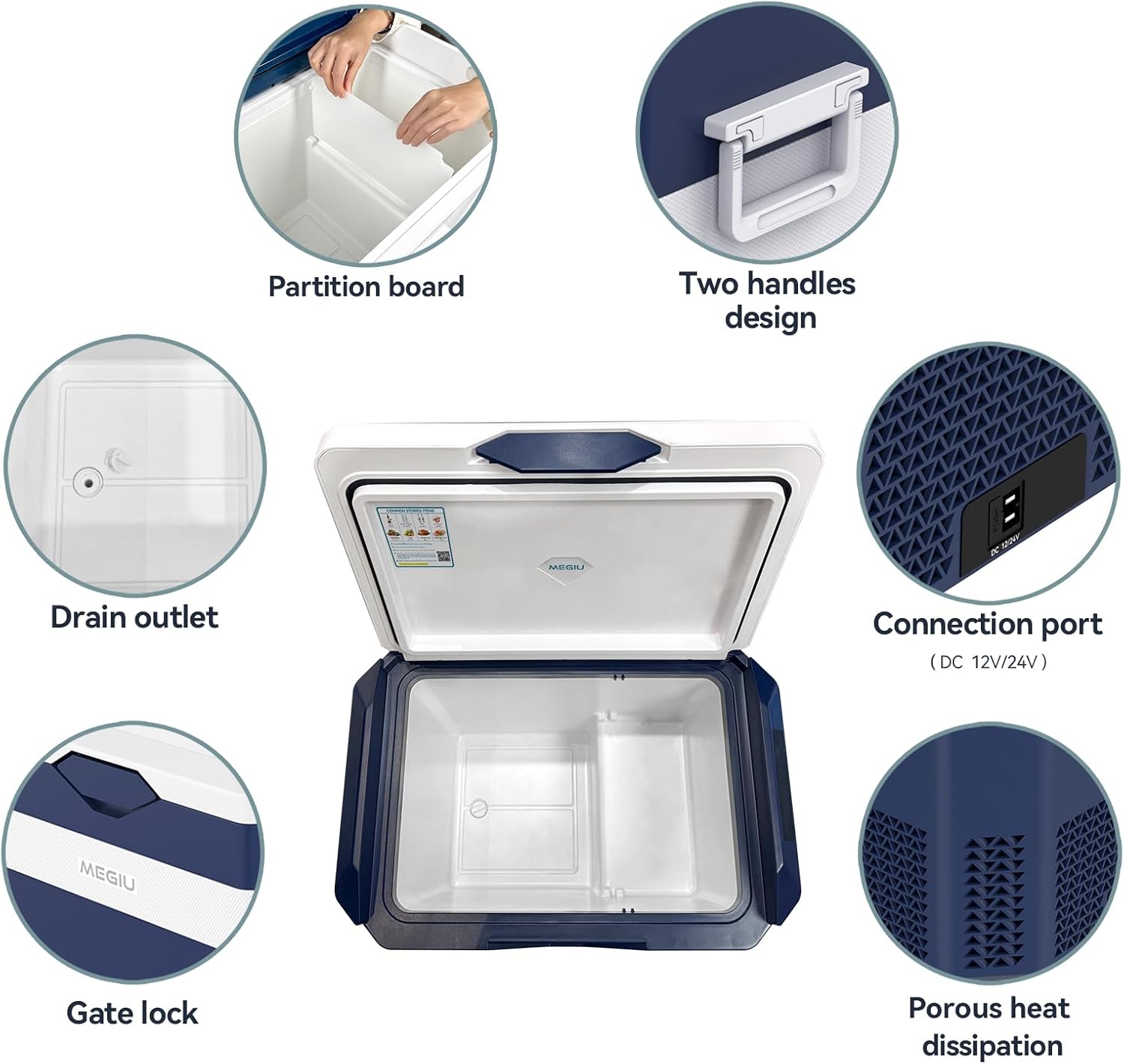 - Advanced Battery Protection – Features three-level battery protection (Low, Medium, High) to prevent car battery drain, ensuring safe operation on long drives with this car refrigerator.