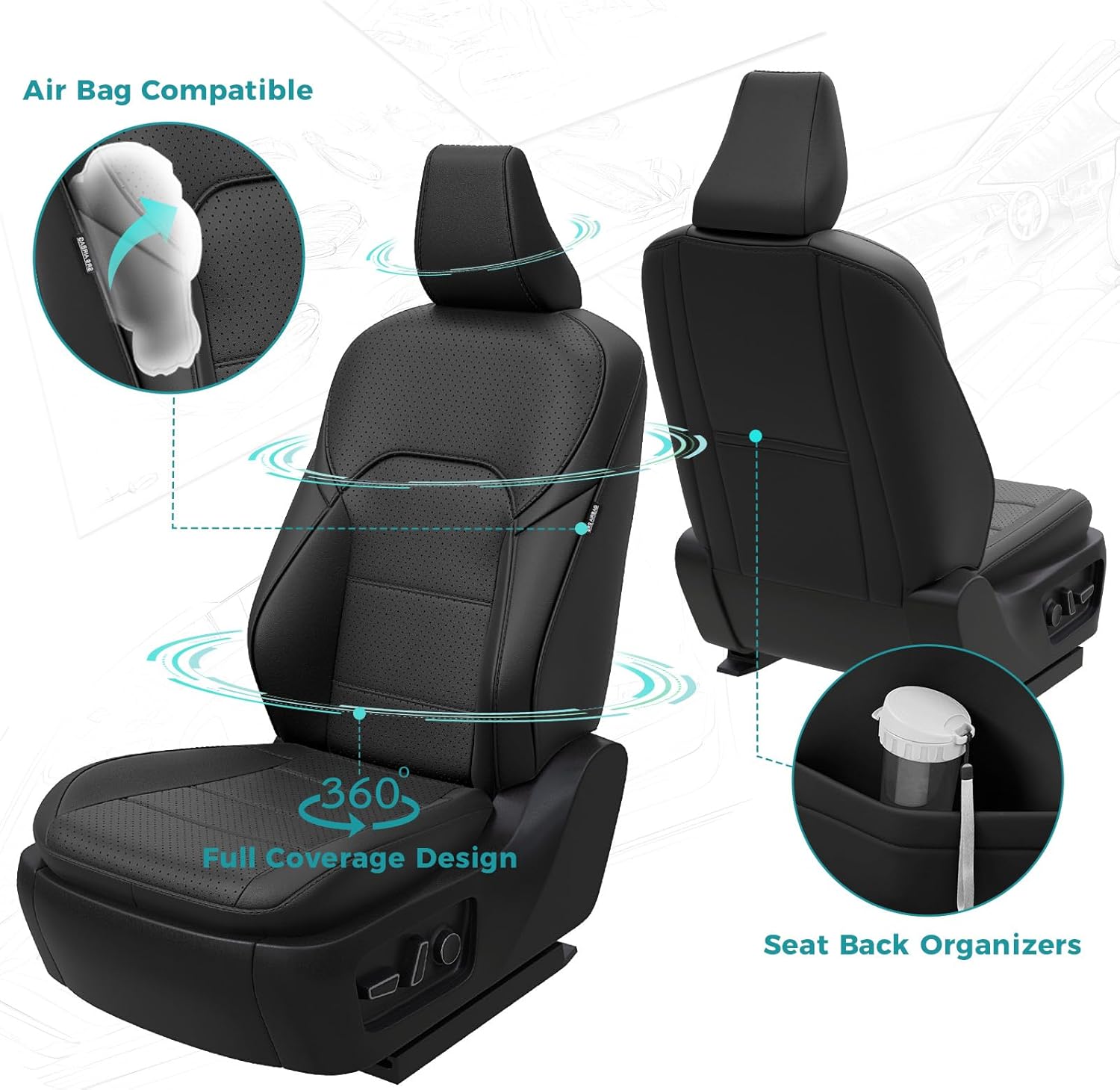 for Toyota Camry Seat Covers XLE XSE 2025 - Custom Fit Car Seat Covers Full Set, Leather Seat Covers for Cars, Waterproof Car Seat Cover, Black