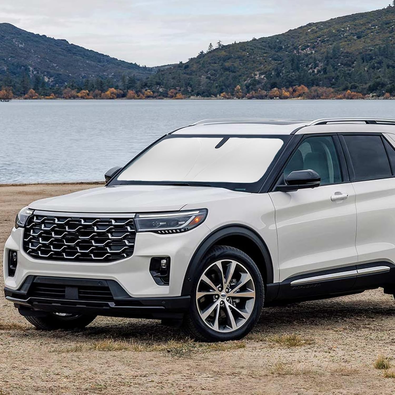 - [VEHICLE SPECIFIC] SLOGENTO Windshield Shade custom fit for 2020-2023 2024 2025 Ford Explorer SUV,Full covered your windshield,No Gap,100% Perfect fit.