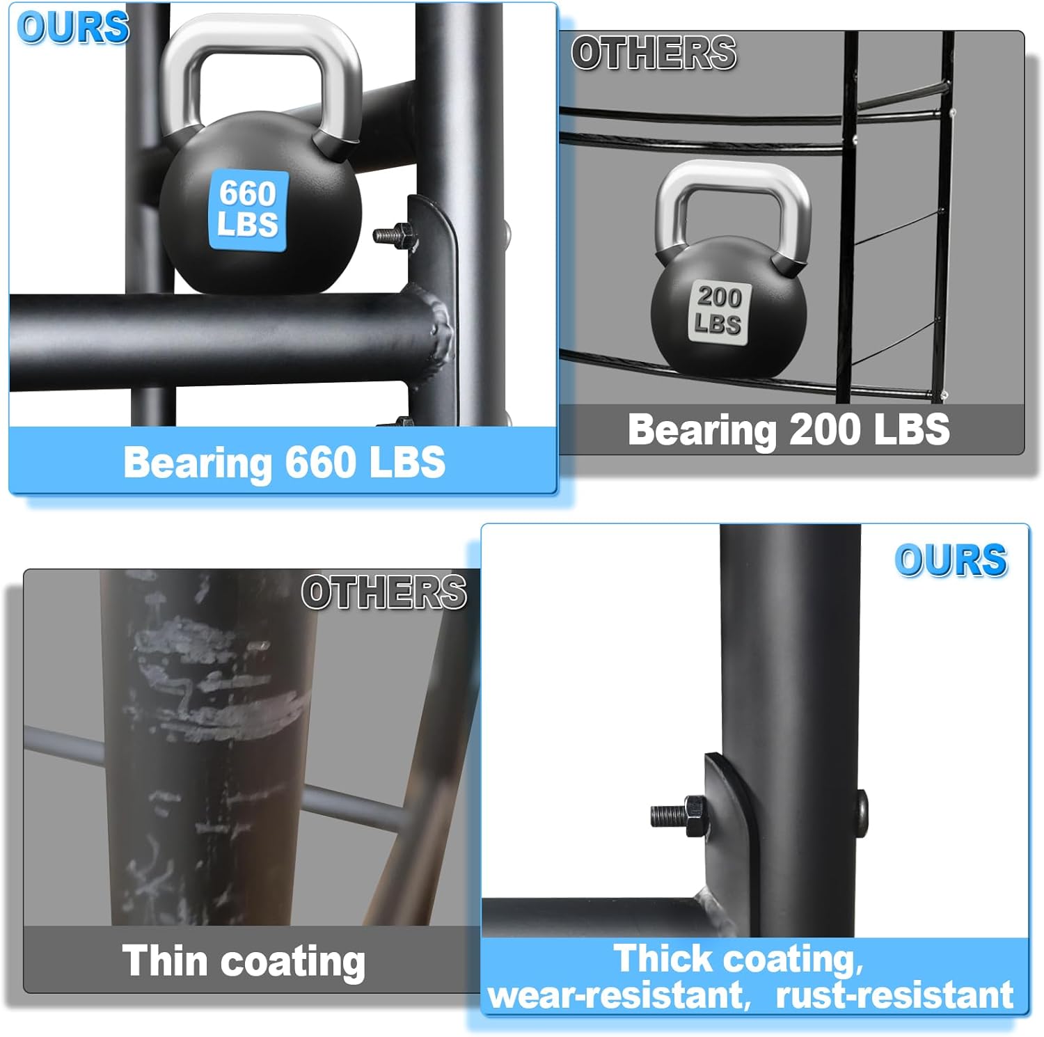 - Impressive Load Capacity: With a robust load capacity of 660 pounds, our tire rack for garage handles heavy-duty tasks effortlessly.Whether storing large SUV tires or multiple smaller car tires,it accommodates up to four tires of various sizes,perfect for families with multiple vehicles or auto enthusiasts