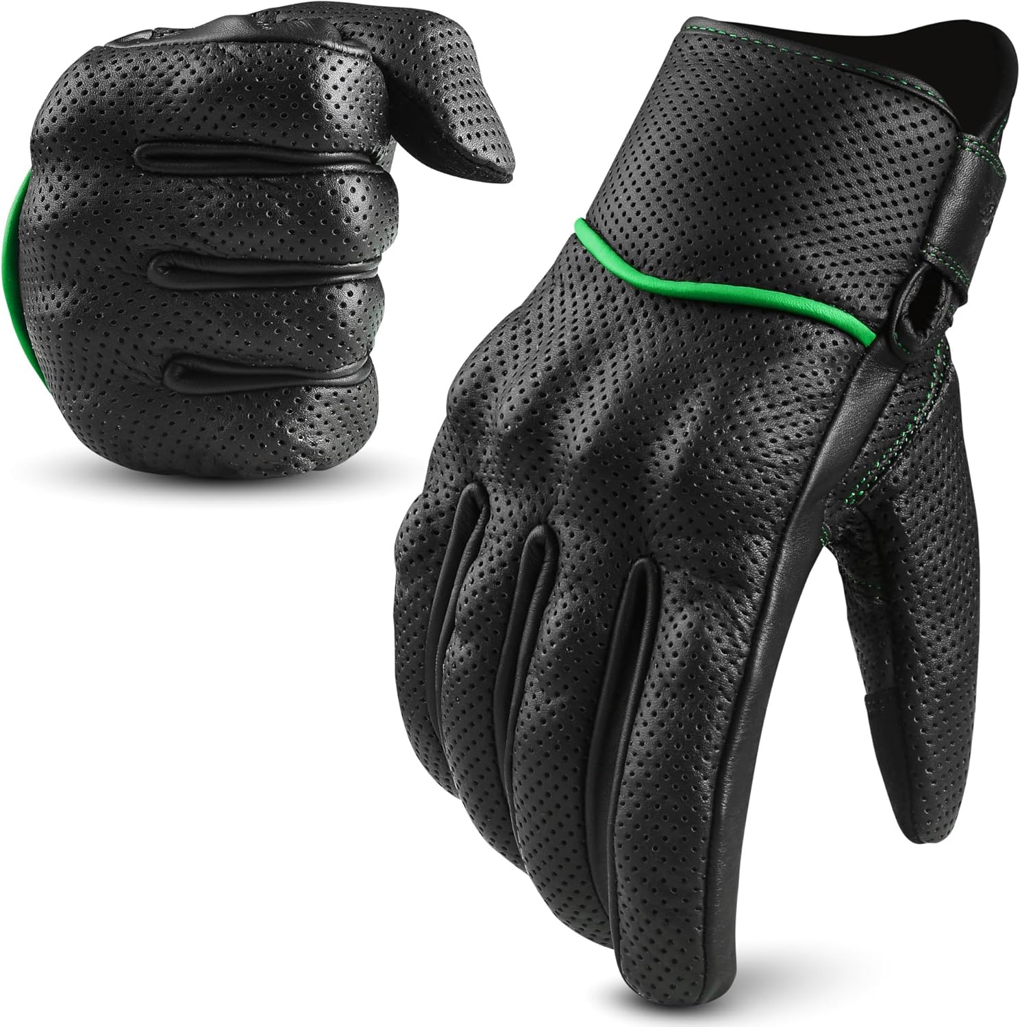 - LEATHER MOTORCYCLE GLOVES - aaasportx Black green Motorcycle Gloves are made of Genuine Leather. Our Lightweight Motorcycle Gloves ensures durability through a variety of situations. aaasportx Motorcycle Gloves for Men offer a high-quality, stylish, and durable finish that excludes sophistication and toughness on the road.