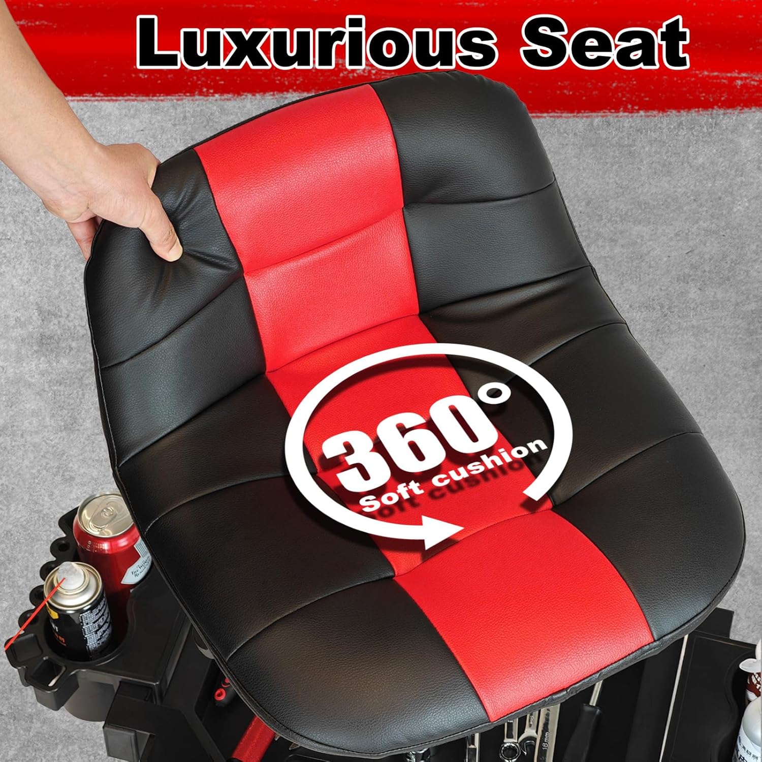 - Enough Stroage Space: The Mobile Rolling Shop Stool is equipped with 1 black plastic storage tray and 2 Cup & Tools side holders. At the same time, we have set up dedicated placement areas for small parts. With ample storage, you can carry your supplies with you while working, like important car care or repair supplies.