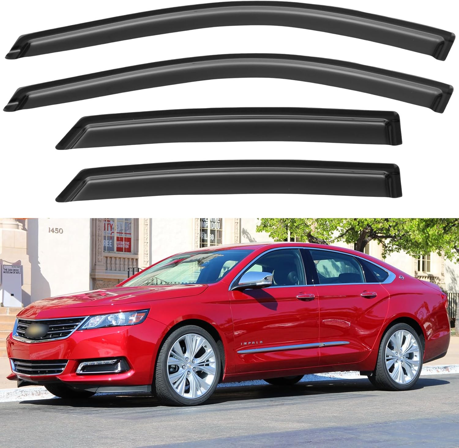 - 【Perfect Fit】YQAUTEC 4Pcs Out-Channel Window Visors Rain Guards Shield fit for 2014 2015 2016 2017 2018 2019 2020 14 15 16 17 18 19 20 Chevy Impala (NOT for 2014-2016 Impala Limited), Side Window Vent Wind Deflectors Visors Shades.