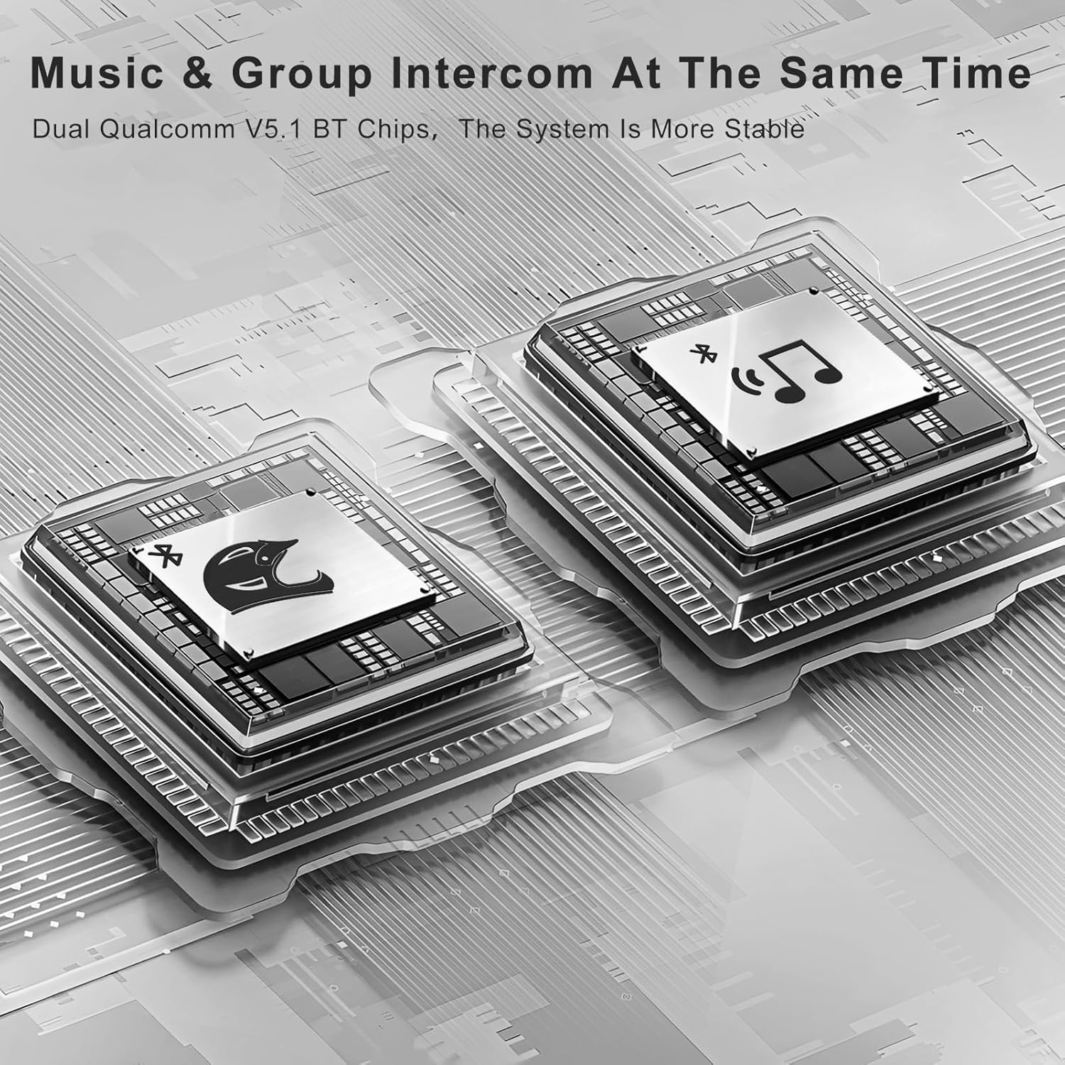 - 【Bluetooth 5.1 Dual Connect 】The SKYVENT Q4 headset intercom is equipped with top-notch Bluetooth 5.1 and a revolutionary dual module, allows you to listen to music or GPS navigation while talking on the Bluetooth headset intercom.