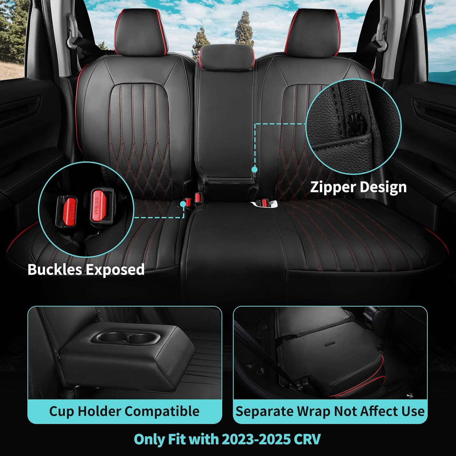 Seat Covers for Honda CRV 2023 2024 2025 2026 EX/EXL/LX/Sport/Touring/Special Edition, Hybrid & Gas, 1:1 Custom Leather Seat Covers Full Set - BlackRed
