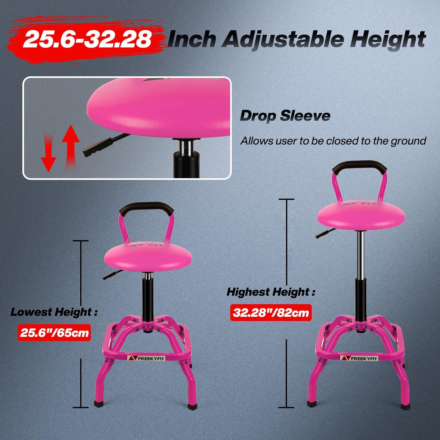Garage Stool, Adjustable Height Swivel Work Mechanic Shop Stool with Backrest, Pneumatic Shop Chair for Home, Workshop, 300 LBS Capacity, 360° Rotation, Heavy Duty, Pink