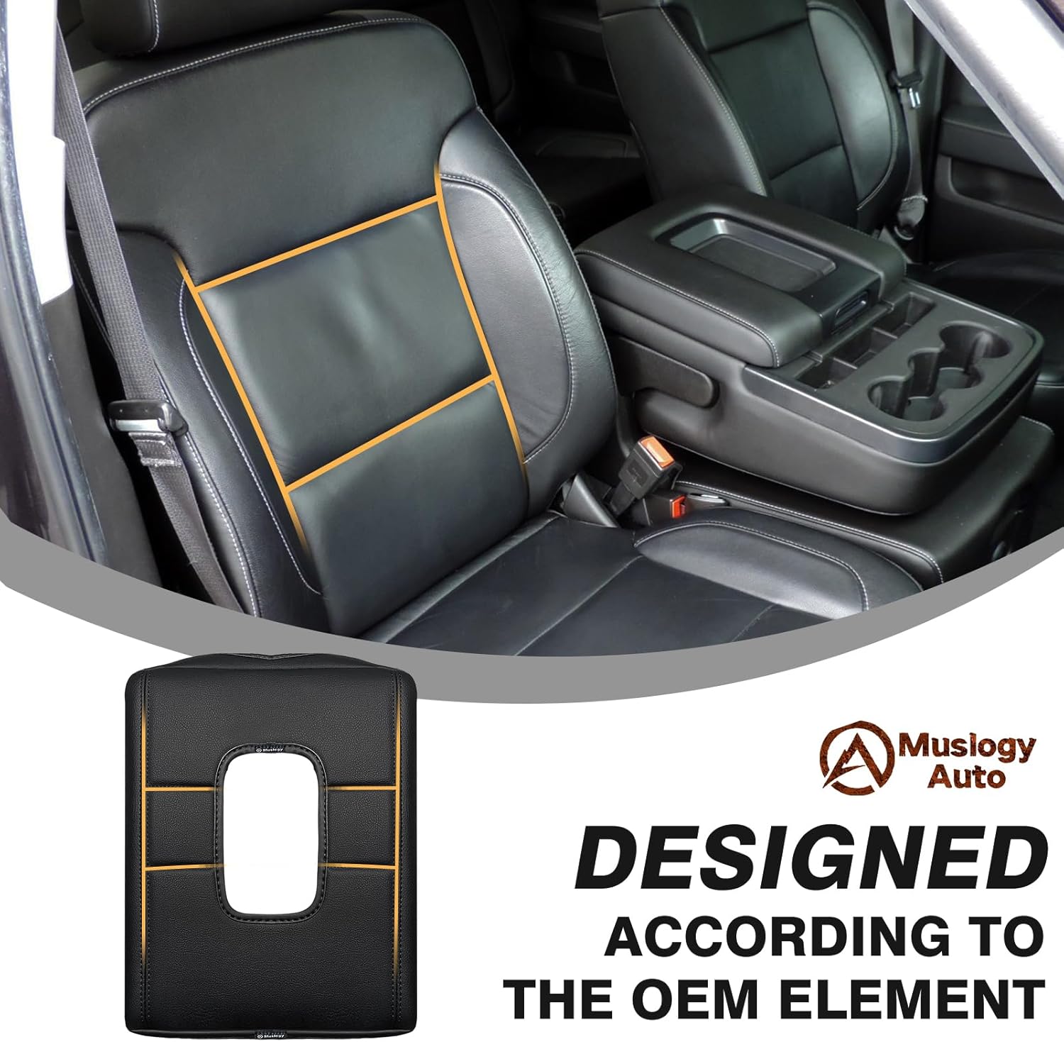Muslogy Center Console Armrest Cover Compatible with Chevy Silverado & GMC Sierra 2014-2018 Comfort Armrest Pad Arm Rest Cushion Vegan Leather Protector Regular Thick(Jump Seat ONLY)