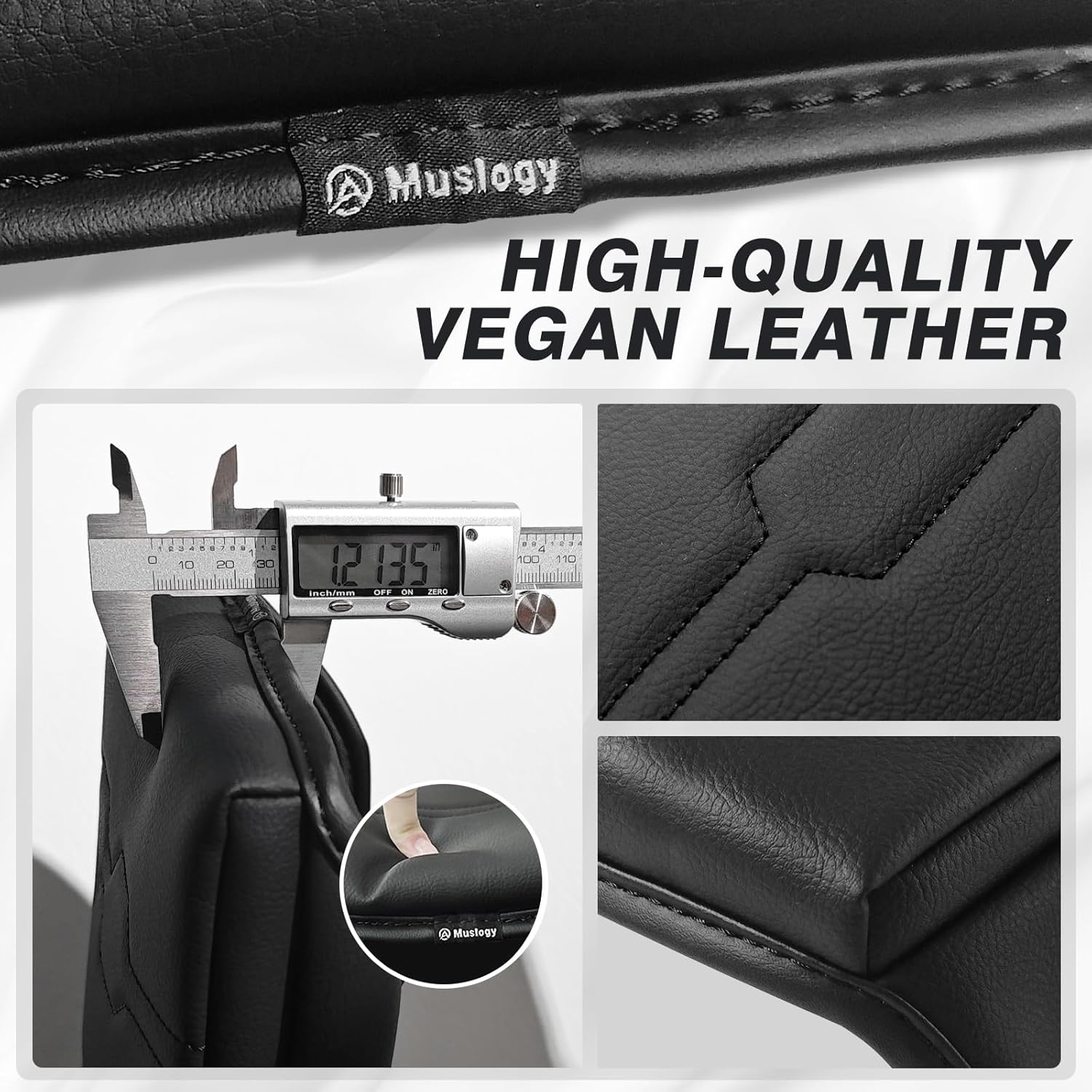 Muslogy Center Console Armrest Cover Compatible with Ford Ranger 2024 2025 Accessories Comfort Armrest Pad Cushion Box Lid Cover Vegan Leather Protector 1-Inch Extra Thick(Black/Black Stitching)
