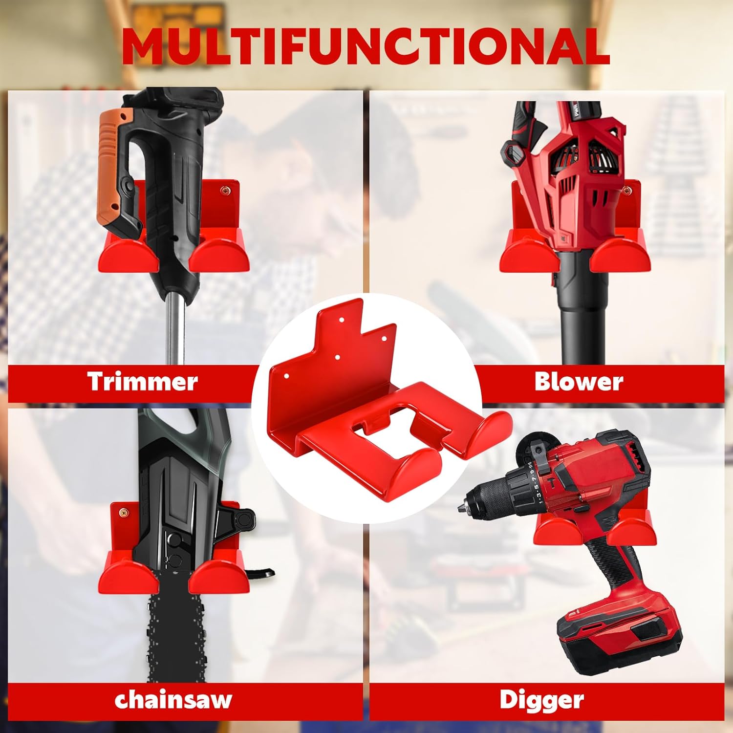 Garage Organization Weedeater Hanger Garage Organizer Trimmer Rack, Wall Mount Garden Tool Organizer Heavy Duty Tool Hangers for Hedge Trimmer, Chainsaw and Leaf Blower (2 Pack, Red)