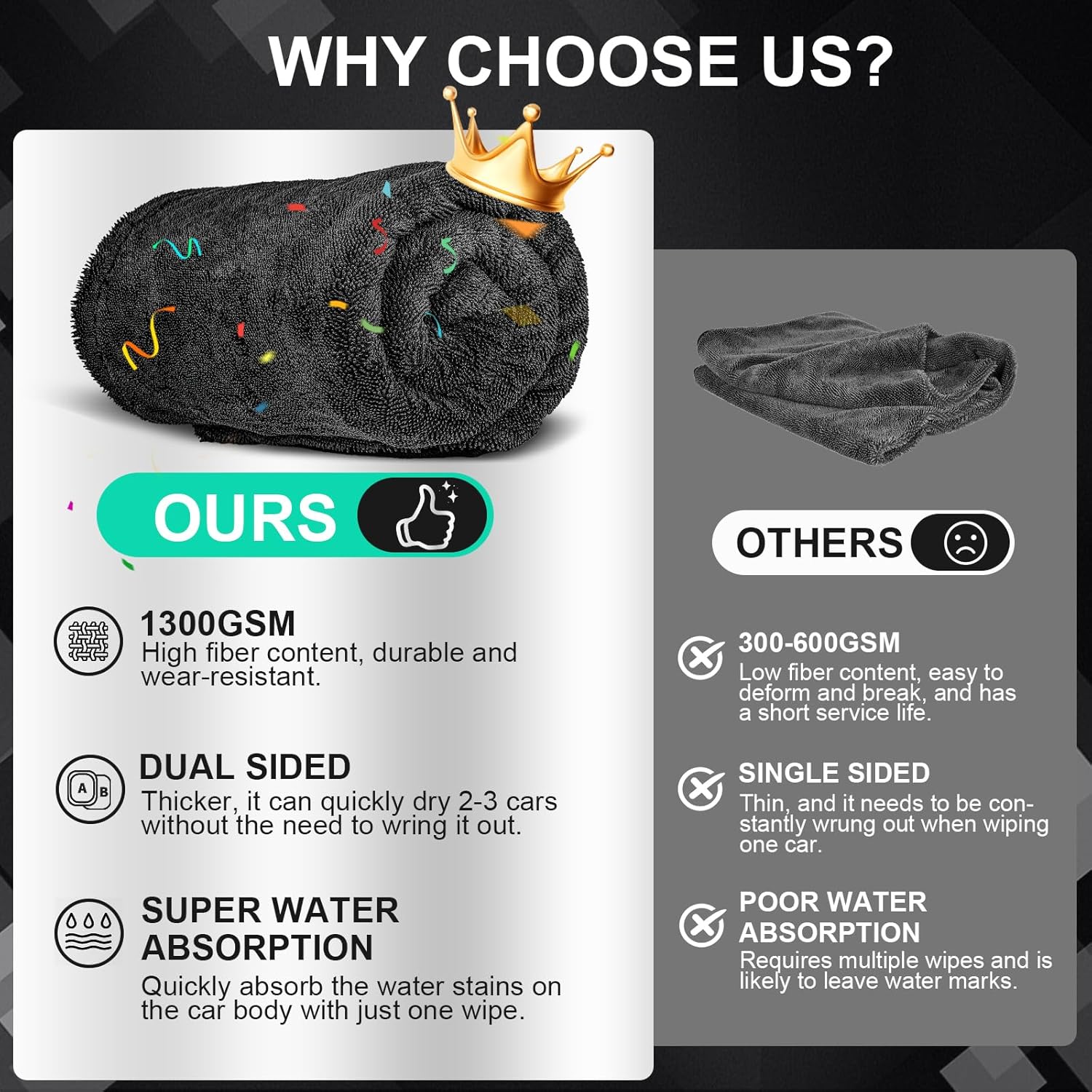 - 【ZERO STREAKS & SPOTS】Featuring Twisted - Loop Microfiber Technology, this 24”x 35” towel dries your car in one pass. Say goodbye to water spots and streaks, and achieve a showroom - like shine easily.