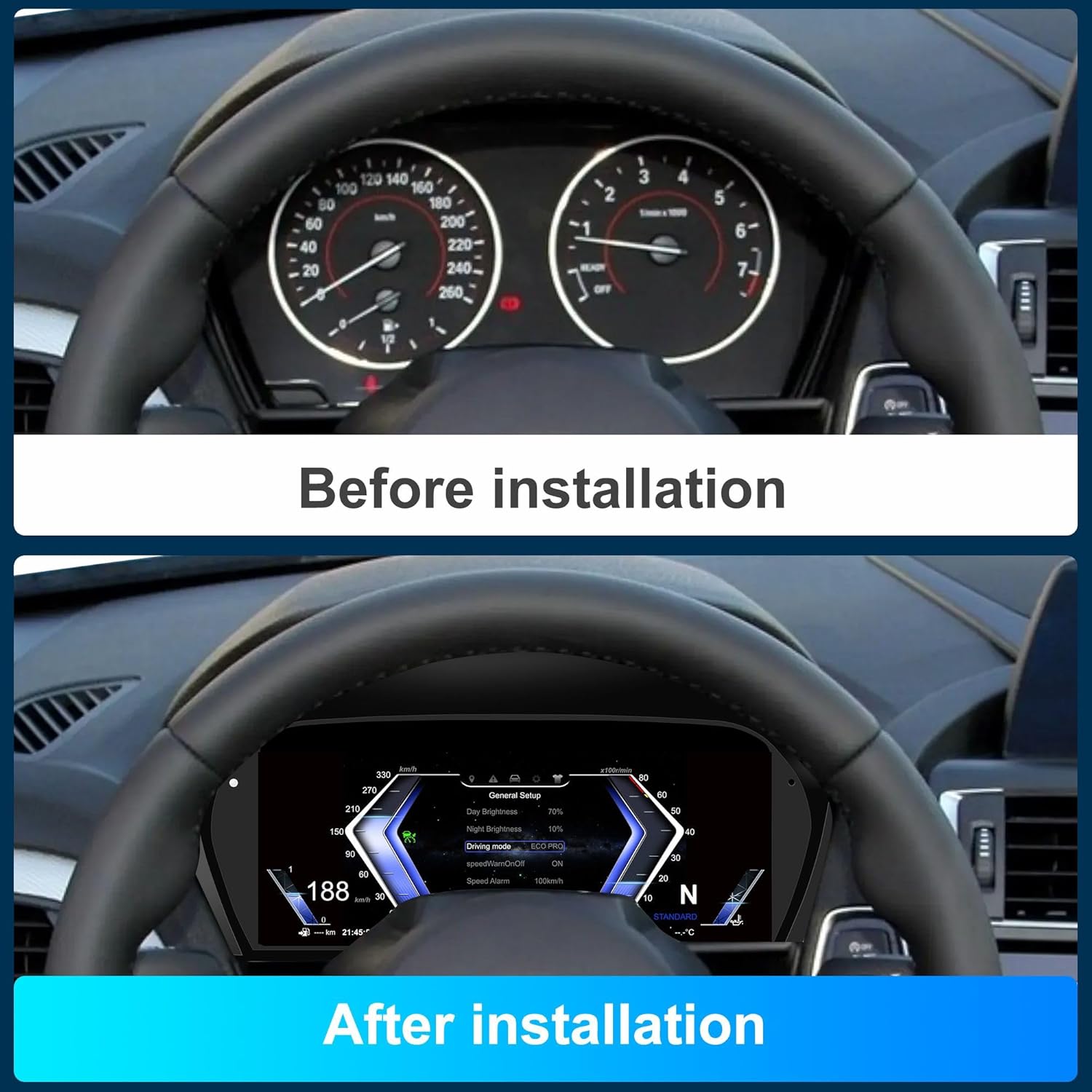 - ☑️[Technical Support] Install only 2 cable connections required. Upgrade software for this digital dash/speedometer is available