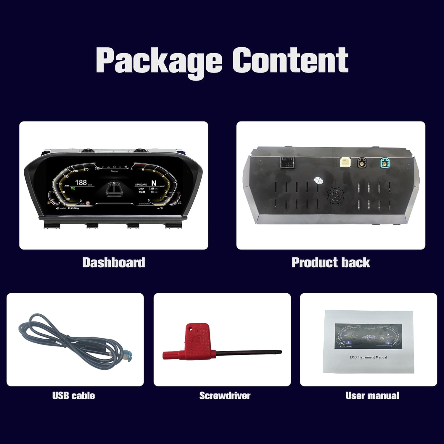 - ✔️[4 sets of UI styles can be freely switched] This digital cluster odometer features 4 customized modes (simple, comfortable, track, and technology) for the LCD. Additionally, it offers 4 color interfaces (red, purple, blue, and orange) that can be freely changed to enhance your driving comfort. The original vehicle data and information are presented more intuitively