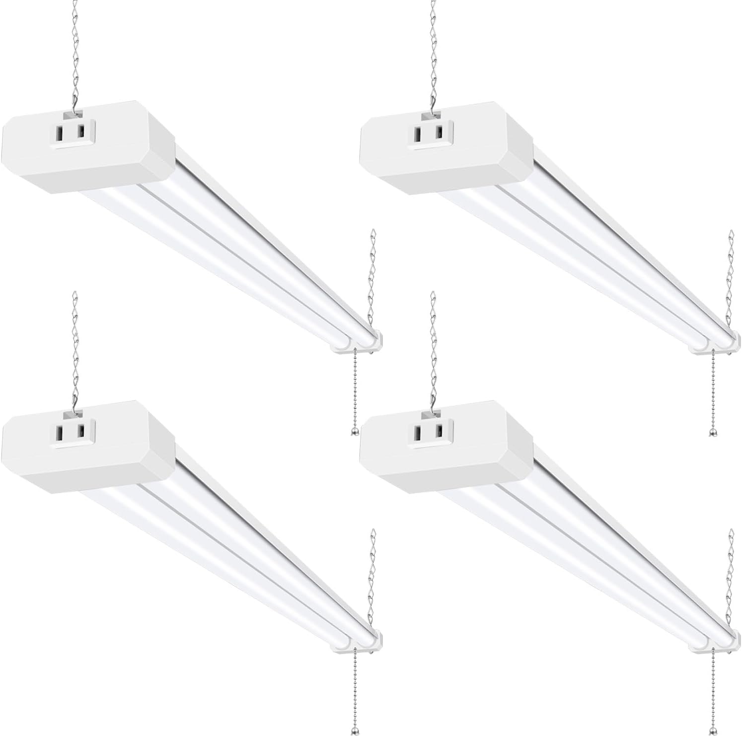 hykolity 4 Pack 4FT Linkable LED Shop Light for Garage, 6500lm, 4FT 60W Utility Light Fixture, 5000K Daylight LED Workbench Light with Plug, Hanging or Surface Mount, White - ETL
