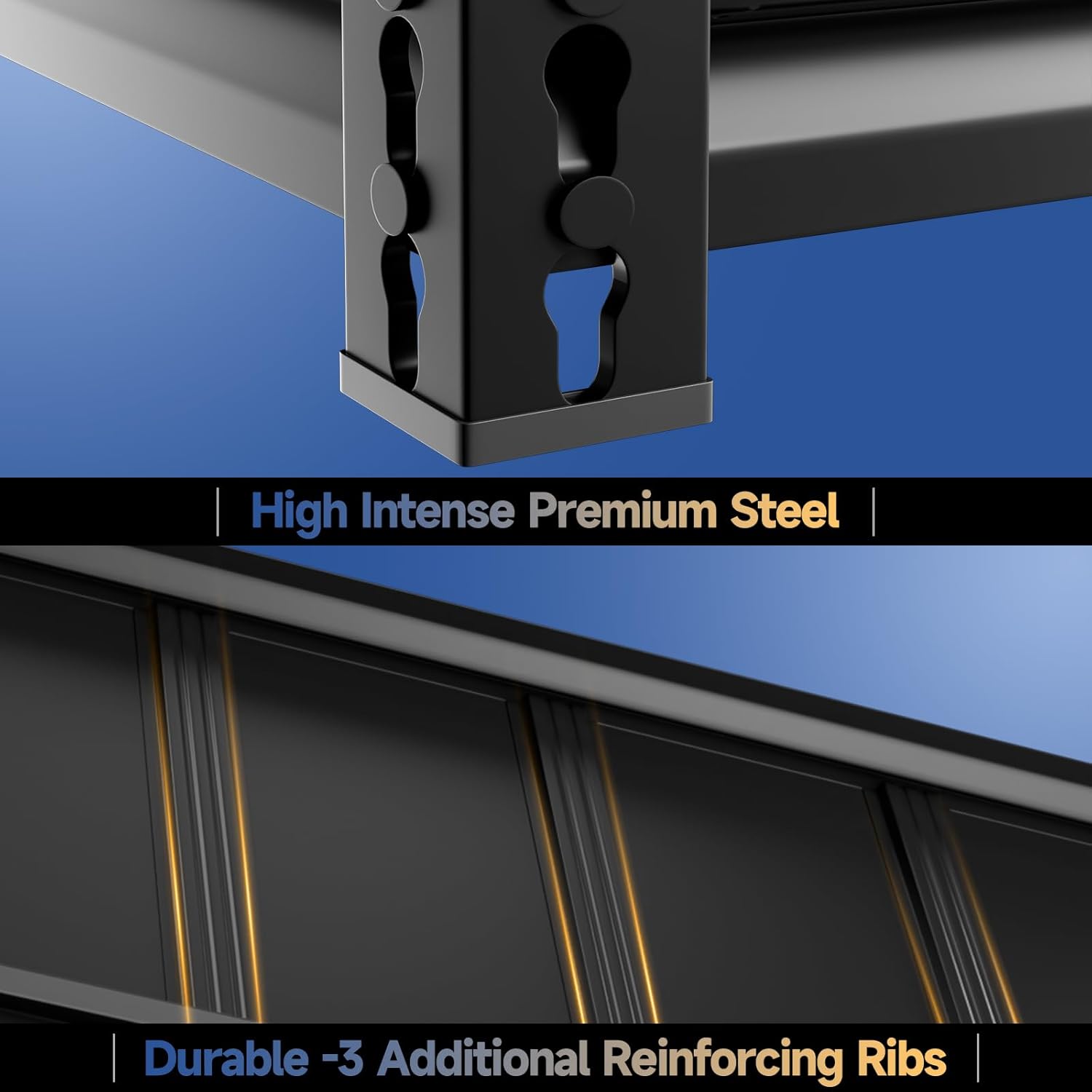 - 2500LBS Heavy Duty Shelving: Each sturdy metal plate features 3 strong support ribs on the back and can hold up to 500 pounds individually, providing enough support for items weighing up to 2500 pounds in total. They are ideal for garages, warehouses, industrial, and basement storage.