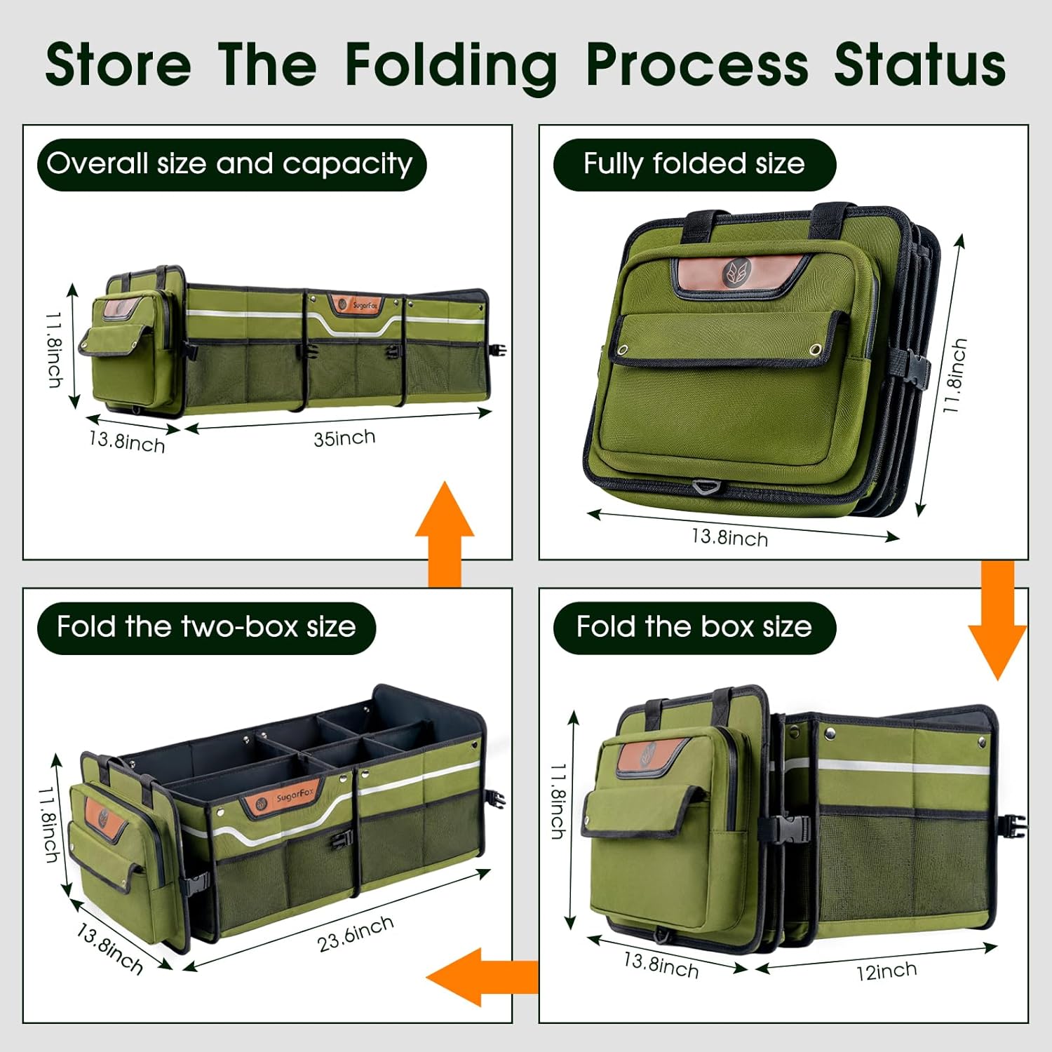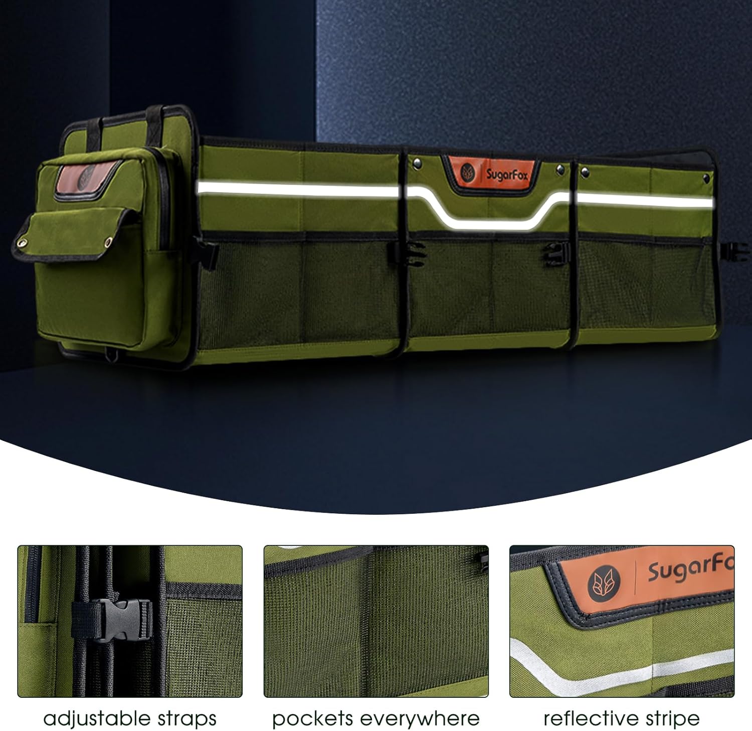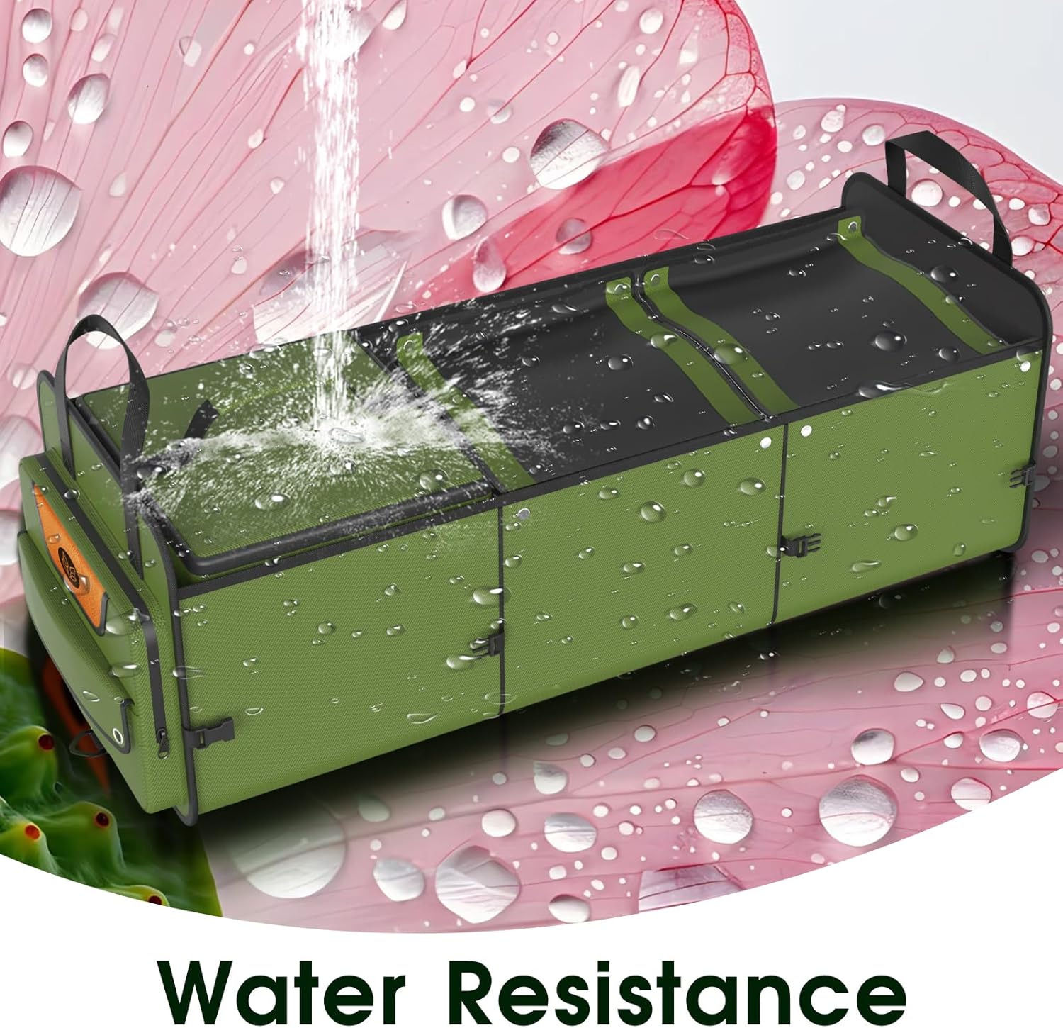 Trunk Organizer, Heavy-Duty Storage for Car & SUV, Foldable Waterproof Car Organizer with Cooler, Collapsible Multi-Compartment Storage, 95L, Green-M003
