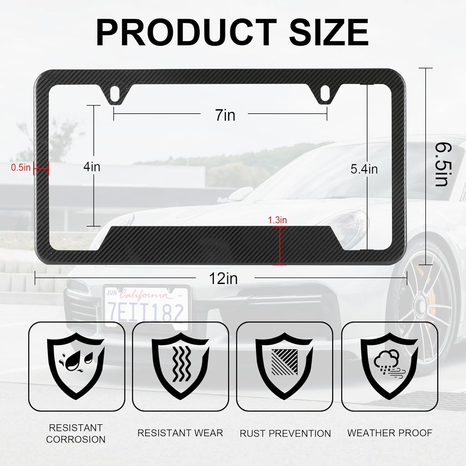 - 【Universal Fit】Measuring 12 inches x 6.5 inches with an inner size of 11 inches x 5.4 inches, these frames fit most standard US license plates. Four pre-drilled holes ensure compatibility with various vehicle models without the need for modifications. Note: Some cars have only 2 holes, so please check your vehicle before ordering.