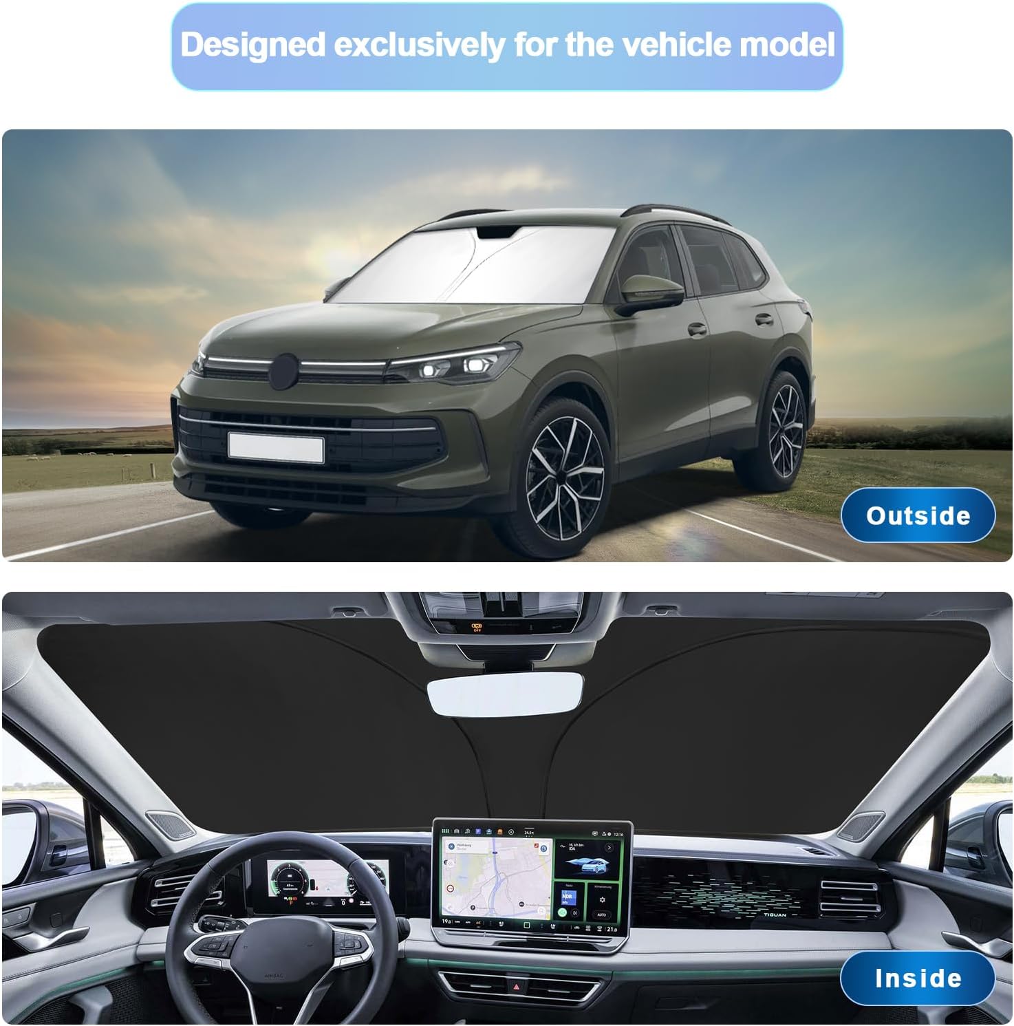 - 1.Custom Fit: this windshield sun shade is custom designed for 2025 VW Tiguan sunshade for 2025 Tiguan accessories front window.You don’t need to worry about oversize or too small,consider it if you need a car protector cover that protects your car interior from sunburn.