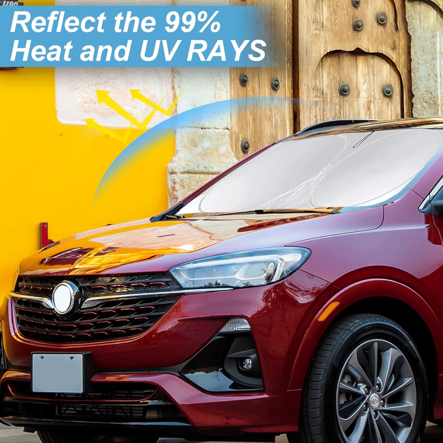 - [CUSTOM-FIT FRONT WINDSHIELD SUNSHADE] Automotive windshield sun shade is Specifically designed,which for Buick Encore 20220 2021 2022 2023 2024 2025 accessories. We have several size of car sunshade. Please measure your car size and refer to our size before your purchase. Once installed it won't have gaps, sags or slumps like other car sun shade windshield