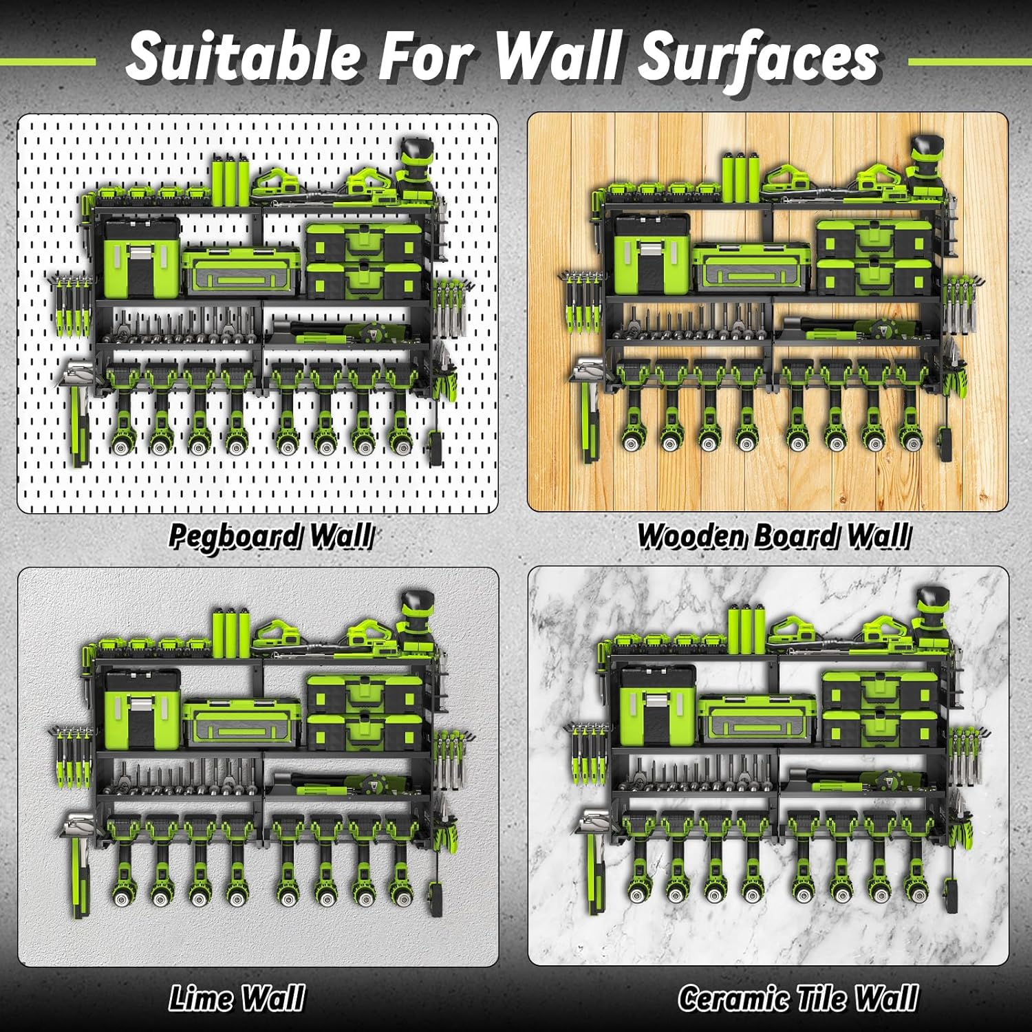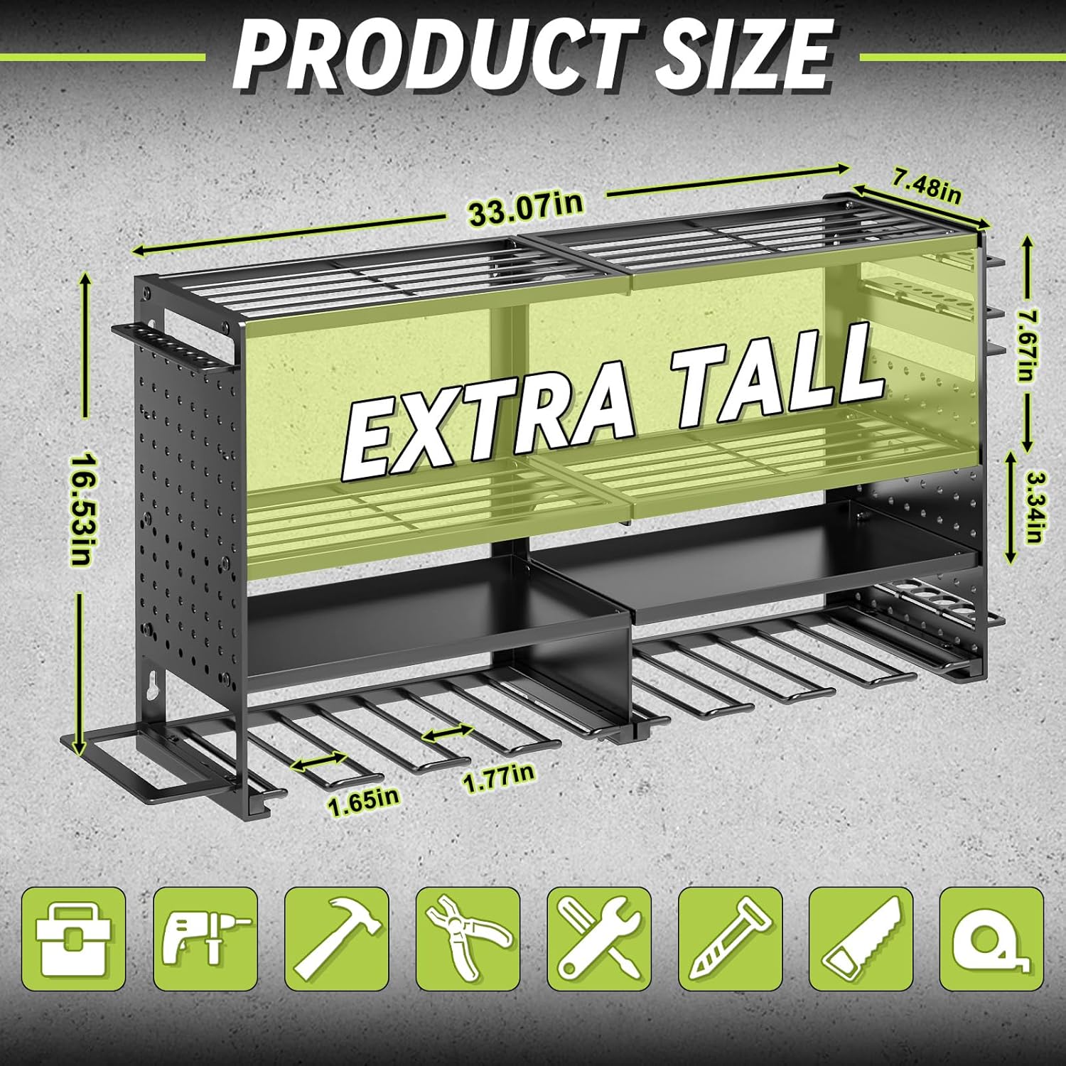 - New Upgrade:The power tool organizer upgrade two new side pegboards, can put hooks hanging wrenches tape measure, and is equipped with a screwdriver pliers hammer and drill replacement core shelf (does not contain hooks, screwdrivers pliers hammer holder need to use force to break open)