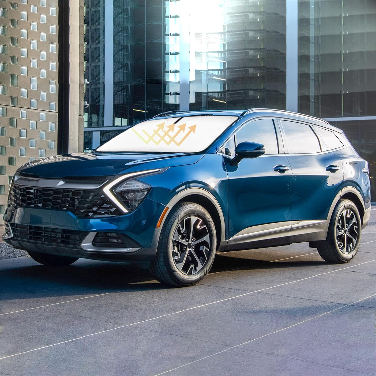 - 【Vehicle Specific】Our Windshield Shade Cover custom fit for 2022 2023 2024 2025 Kia Sportage SUV , Base, Sport, Hybrid, A-Spec SUV Accessories,Full covered your windshield,No Gap,100% Perfect fit. The precise fit design and reinforced steel ring are sufficient to allow the sun shade to precisely fit the front window without the need for suction cups to hold it in place, effectively protecting your car from the sun's rays.