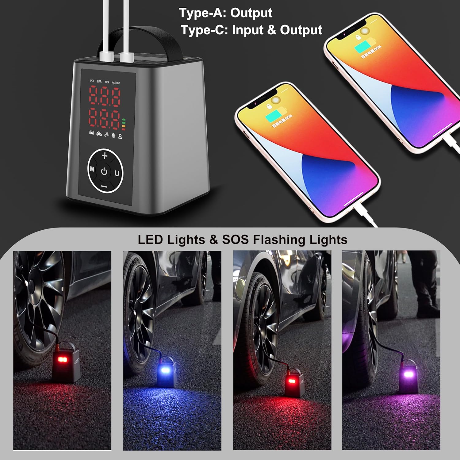 - 【Multiple Practical Functions】The air pump is a must have outdoor travel assistant due to its large battery capacity and fast inflation. What's more, it has an LED light on the back to turn it into an emergency power source in the dark. Equiped with a fast charging type C port for both input & output and a USB output port. You can use it as an power bank for your mobile phone.