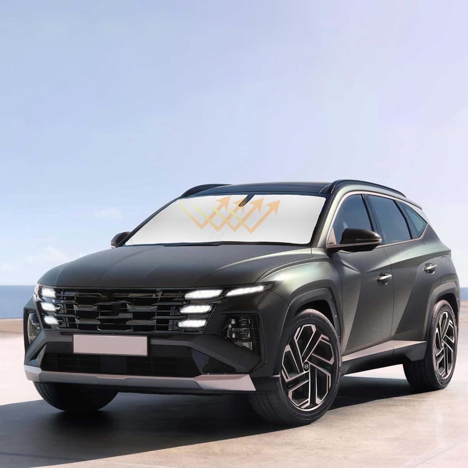 - 【Vehicle Specific】Our Windshield Shade Cover custom fit 2022-2024 2025 2026 Tucson for Hyundai Accessories ,Full covered your windshield,No Gap,100% Perfect fit. The precise fit design and reinforced steel ring are sufficient to allow the sun shade to precisely fit the front window without the need for suction cups to hold it in place, effectively protecting your car from the sun's rays.