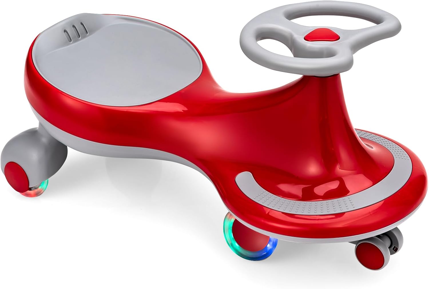HONEY JOY Wiggle Car, 2 in 1 Swing Car for Kids, LED PU Flashing Wheels, No Batteries, Music, Gears or Pedals, Uses Twist, Turn, Ride On Toy for Toddlers Boys Girls 3 Years and Up (Red)