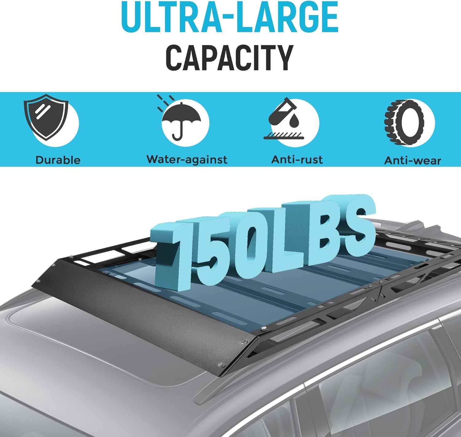 - Large Storage Space: Provide additional storage space on the roof of the vehicle. It is covenient to storage luggages and other things when you are going on a long journey or carrying a lot of things