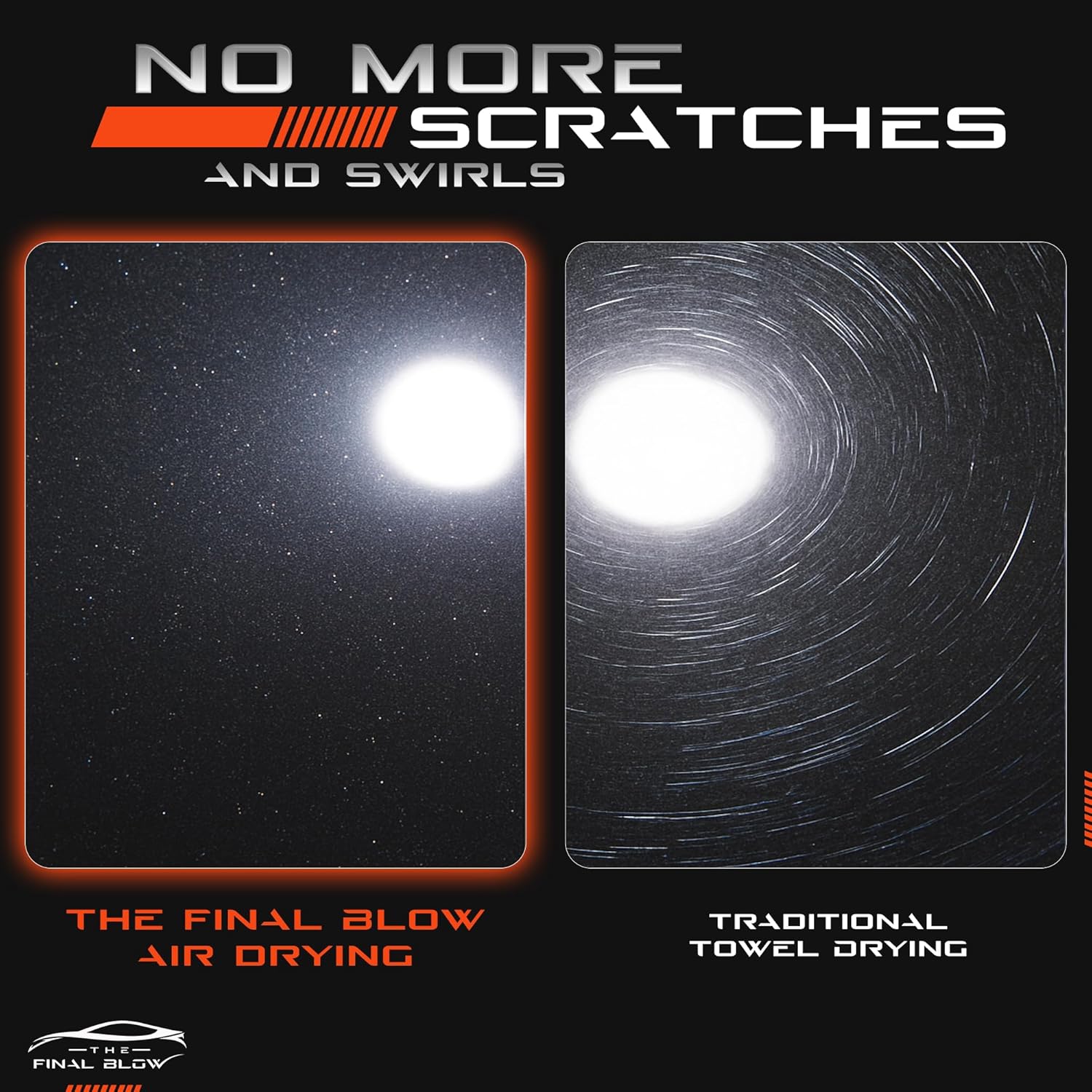 - 🚗STOP WASTING TIME WITH TOWELS. Drying your car with a towel is a pain—and worse, it can leave behind swirl marks and scratches. Our high-powered car dryer blasts water off quickly, so you get a spotless, streak-free shine without the risk of damage.
