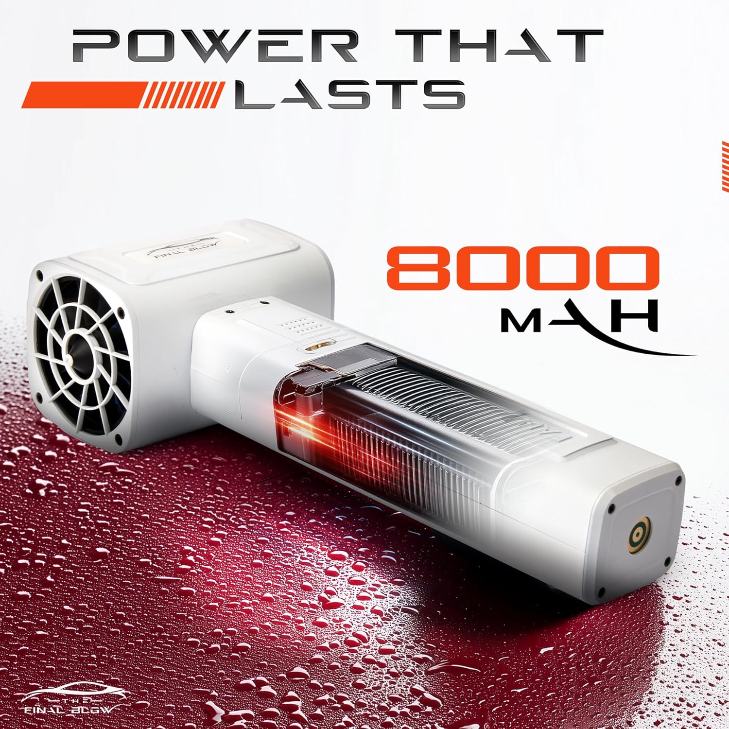 - 🔋POWER THAT KEEPS UP WITH YOU. Tired of car blowers that run out of juice halfway through? Our 8000mAh battery has the power for drying your entire car—whether it’s a sports car or a full-size SUV—without stopping. More power, less hassle.