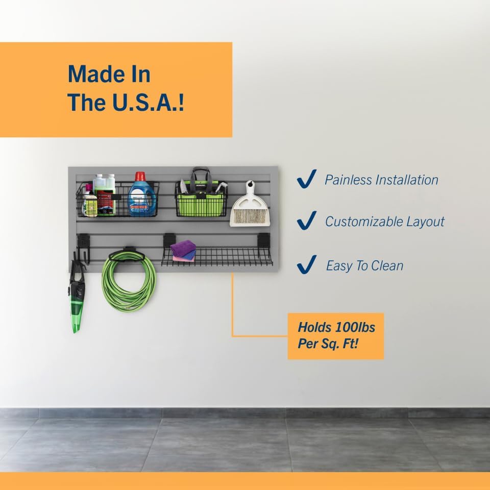HANDIWALL (BLACK) PVC Slatwall Garage Wall Organizer, 4x2ft Heavy Duty Framed Slatwall Panel Storage Kit, Wall Mount Organizing Storage System For Slatwall Accessories