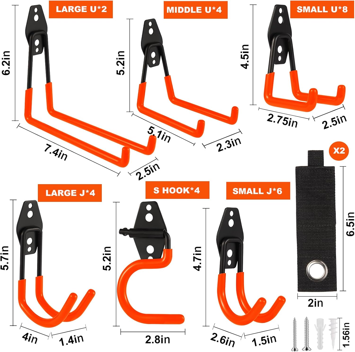 Garage Hook Heavy Duty Wall Storage Hangers, 30 Pack Garage Storage Hooks Steel Tool Orange for Ladders, Ropes, Garden Tools